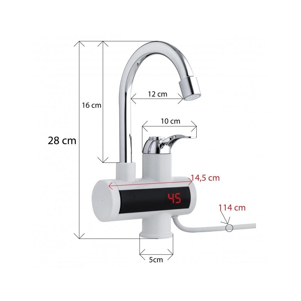 Un încălzitor electric de apă cu afișaj LCD este un dispozitiv excelent pentru persoanele care au nevoie imediat de apă caldă. Ideal pentru bucatarii, bai, cabane, garaje sau pivnite. Bateria face posibilă încălzirea apei până la 60 ° C în cel mai scurt timp. Încălzitorul asigură o siguranță ridicată de utilizare datorită acoperirii rezistente la apă IPx4. Produsul este fabricat din oțel inoxidabil, care este asociat cu durabilitatea ridicată și rezistența la căldură a produsului. Pachetul include un cablu de 1,2 m lungime. Putere nominală: 3KW-3.6KW