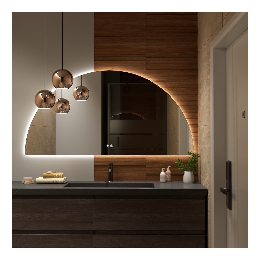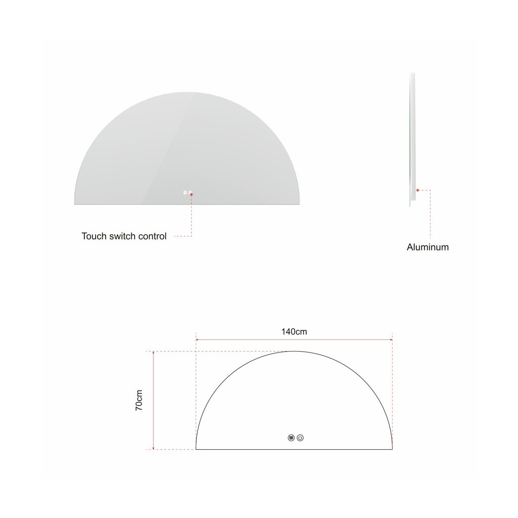 Erga Kori, oglinda LED semicirculara 70x140cm, 2875 lm, 3 culori deschise, ERG-V01-KORI-7014-CL