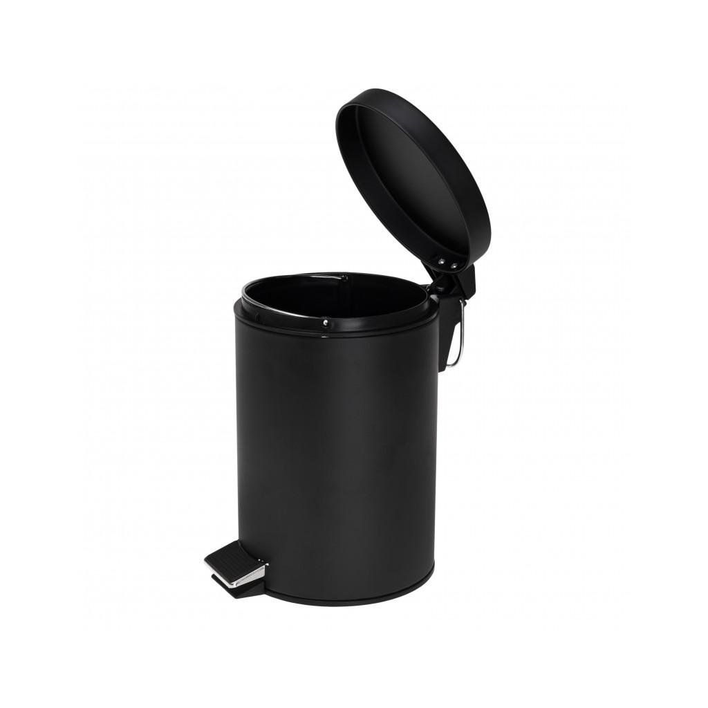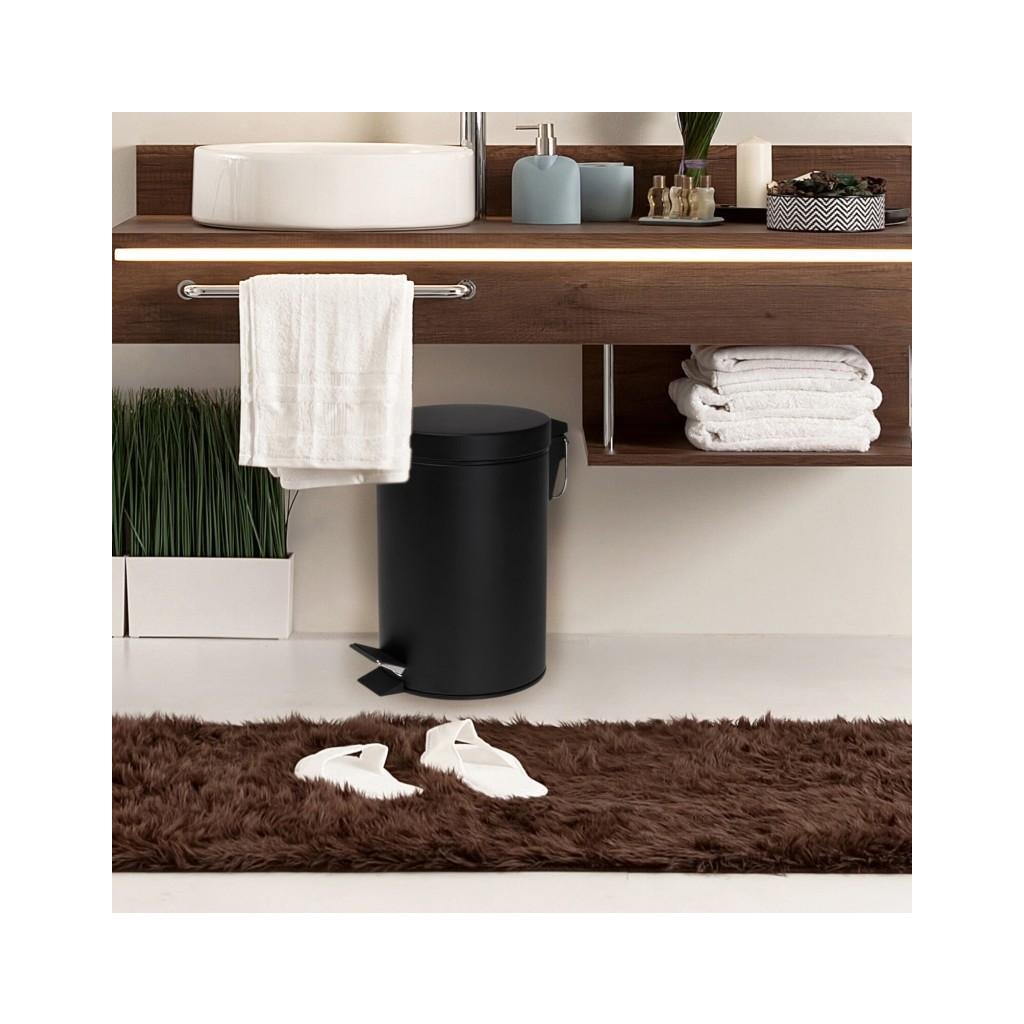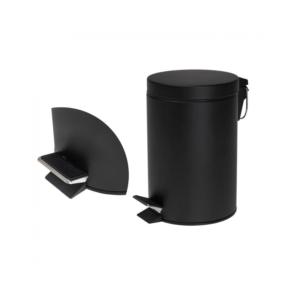Coș de baie modern din oțel lăcuit negru. Recipient cu o suprafață perfect netedă, mată. Datorită pedalei convenabile, putem deschide capacul fără a ne folosi mâinile. In interiorul cosului se afla un recipient din plastic negru care are un maner practic care usureaza golirea cosului. Baza întregului produs este din plastic, care nu va zgâria suprafața băii sau a podelei toaletei. Pe spatele coșului există un mâner metalic mobil pentru transportul sau agățarea coșului. Coșul de gunoi este ideal atât pentru baie, cât și pentru bucătărie, pentru sortarea, de exemplu, deșeurile organice. Echipament excelent pentru fiecare toaletă. Va fi ideala pentru interioare mobilate in stil clasic, modern sau auster.