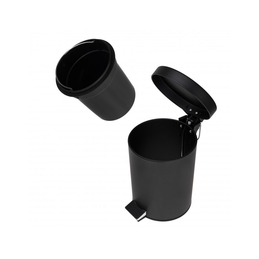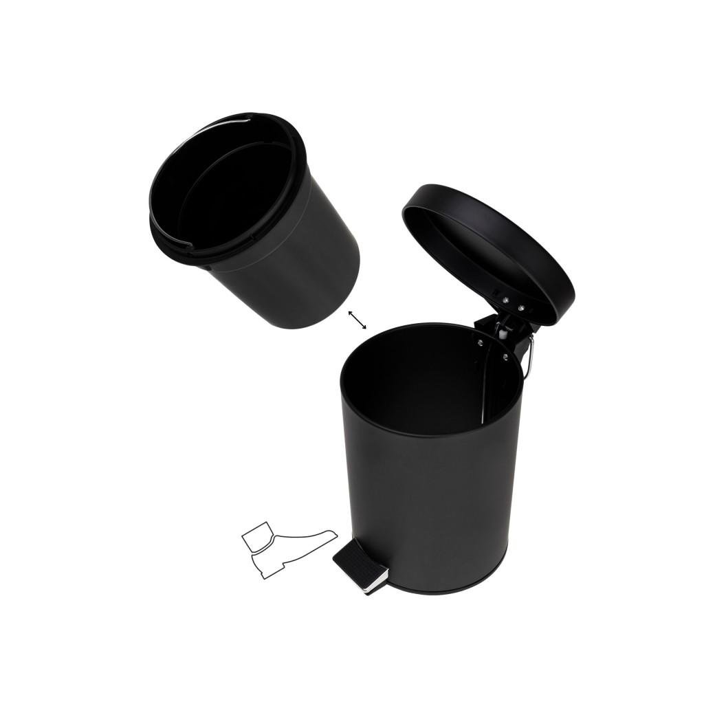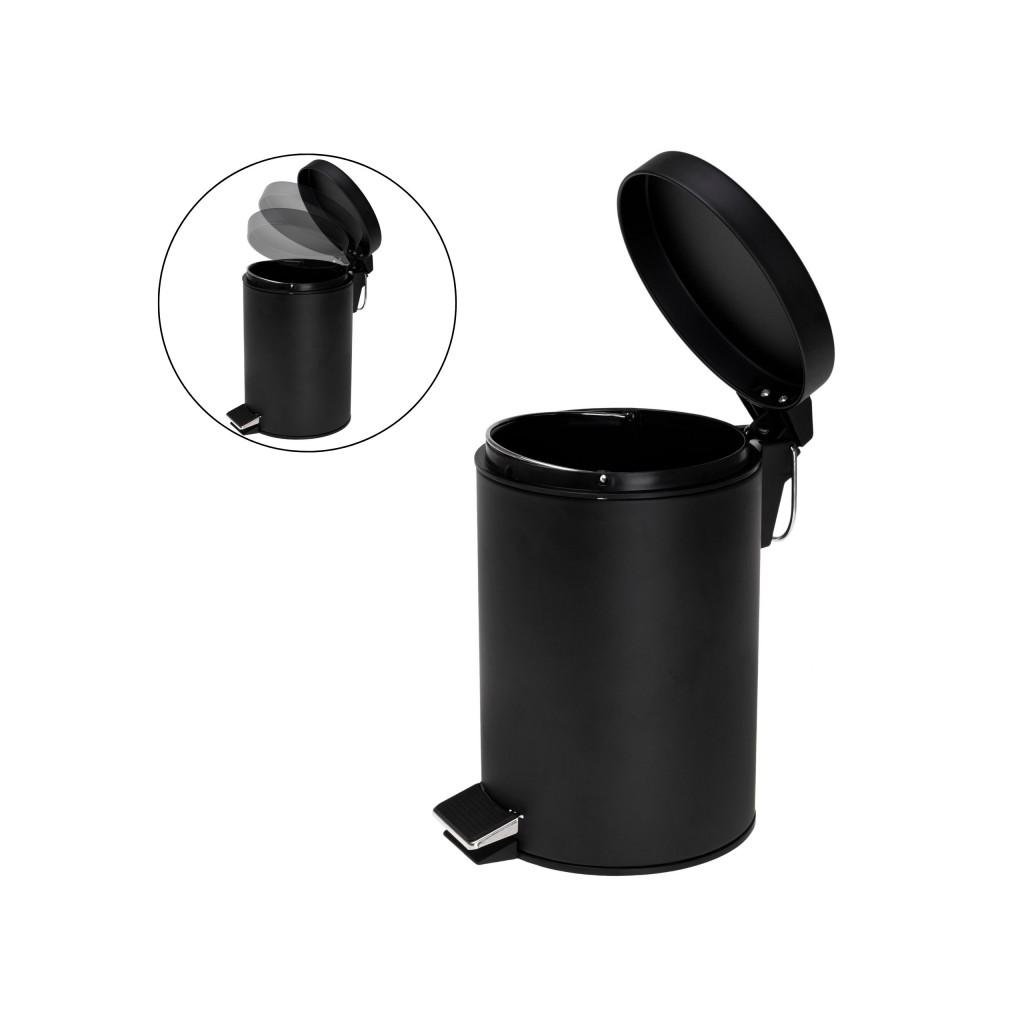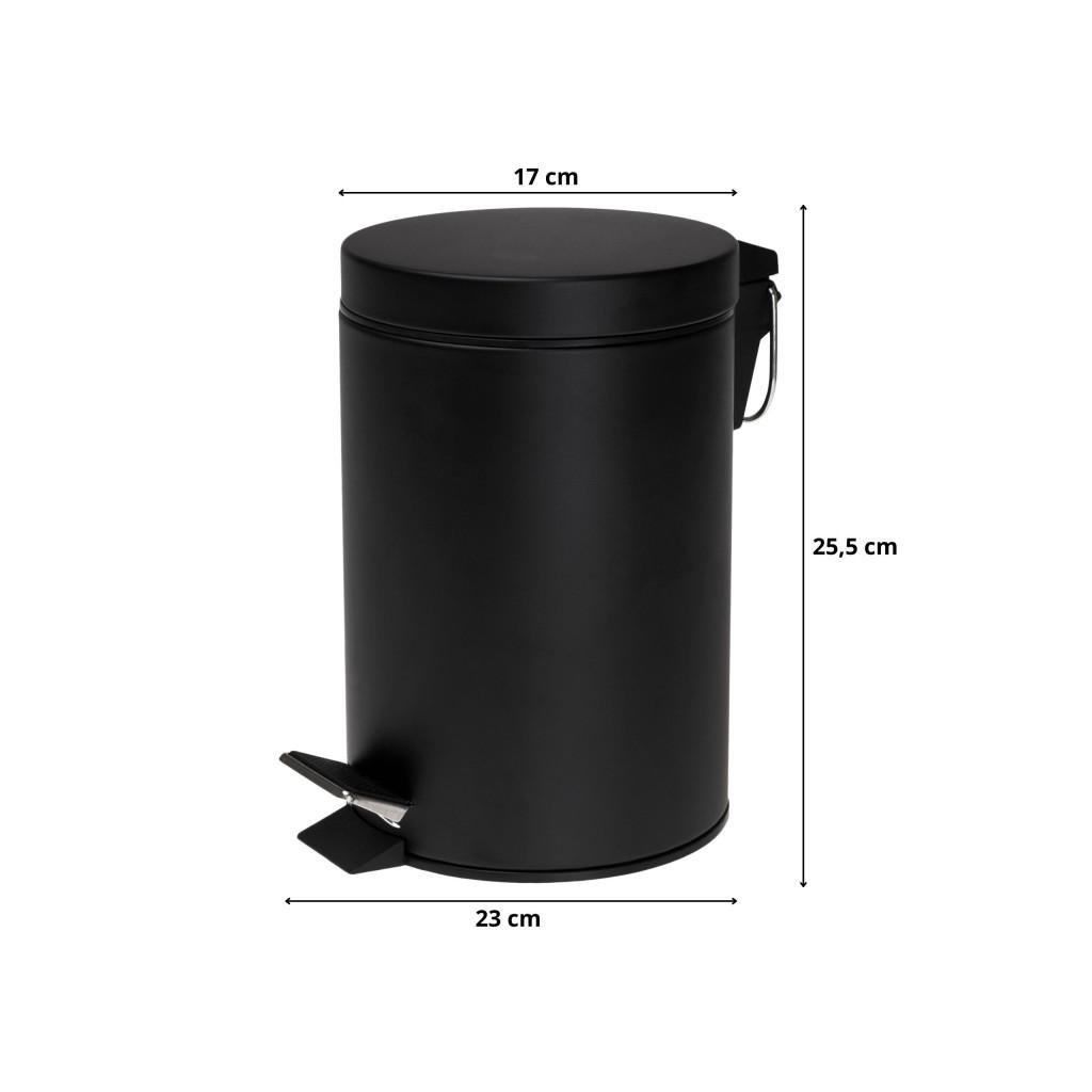Coș de baie modern din oțel lăcuit negru. Recipient cu o suprafață perfect netedă, mată. Datorită pedalei convenabile, putem deschide capacul fără a ne folosi mâinile. In interiorul cosului se afla un recipient din plastic negru care are un maner practic care usureaza golirea cosului. Baza întregului produs este din plastic, care nu va zgâria suprafața băii sau a podelei toaletei. Pe spatele coșului există un mâner metalic mobil pentru transportul sau agățarea coșului. Coșul de gunoi este ideal atât pentru baie, cât și pentru bucătărie, pentru sortarea, de exemplu, deșeurile organice. Echipament excelent pentru fiecare toaletă. Va fi ideala pentru interioare mobilate in stil clasic, modern sau auster.