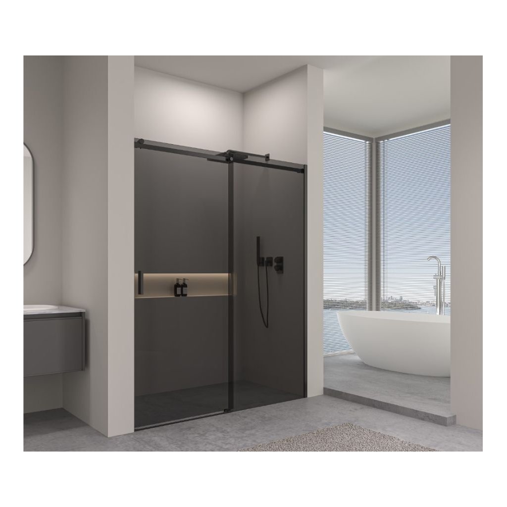 Erga Lynn, usa de dus culisanta in deschidere 150x195 cm, sticla gri 8 mm, profil negru, ERG-V02-LYNN-D150-GR-BK