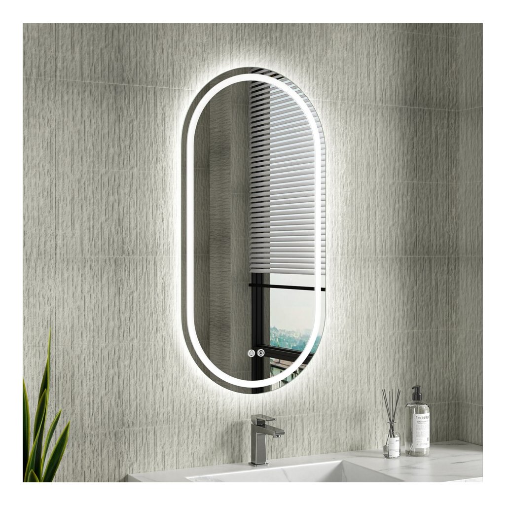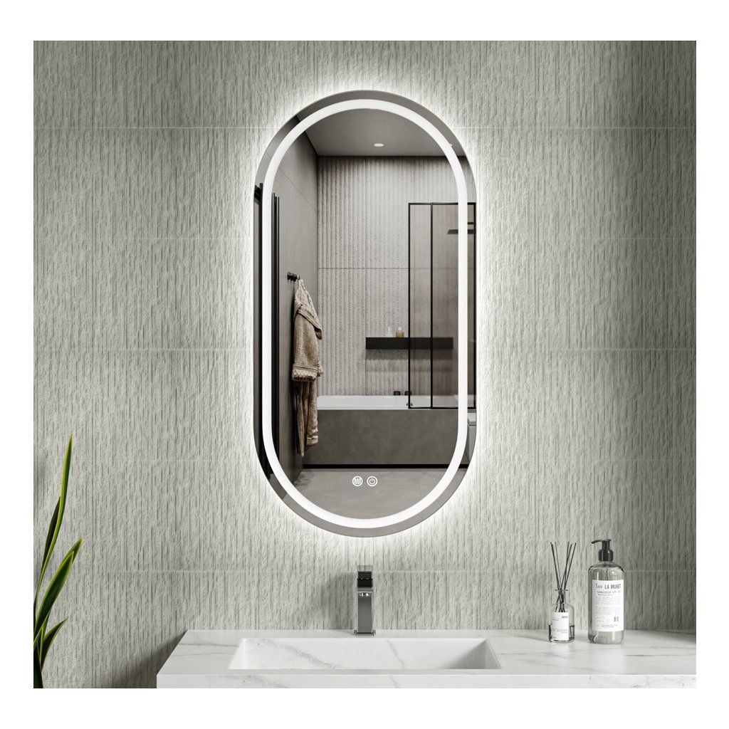 Erga Lyra, oglindă ovală LED 50x100cm, 3 culori de lumină, iluminare față și spate, pernă încălzitoare anti-aburire, ERG-V01-LYRA-5010-CL