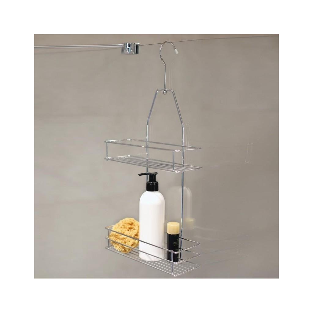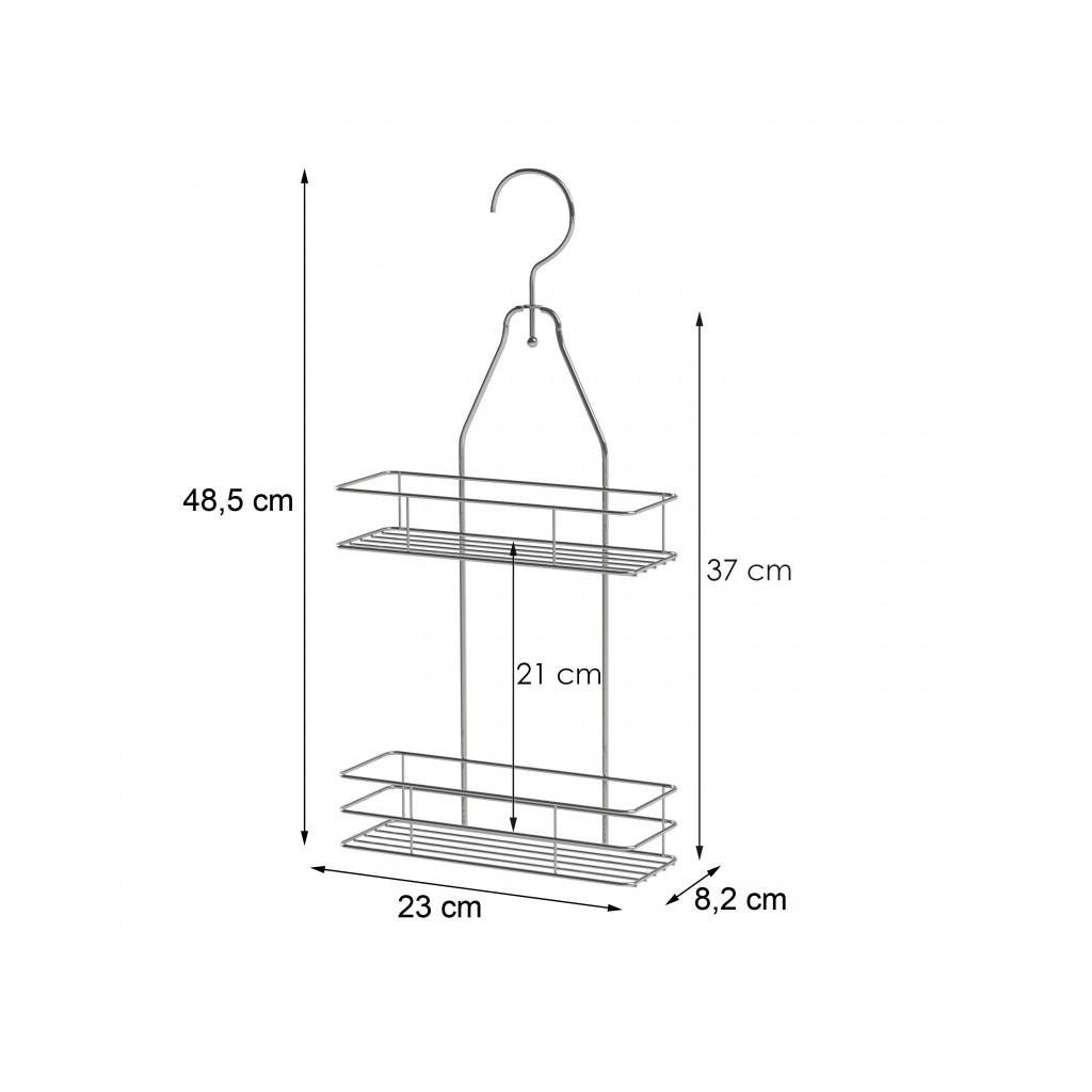 Coș de baie pe două niveluri, montat pe perete, din oțel cromat. Atașare practică și simplă la colțul de duș sau suportul de duș. Instalare convenabilă fără găurire sau lipire. Recomandăm nu numai caselor private, ci și hotelurilor și pensiunilor.