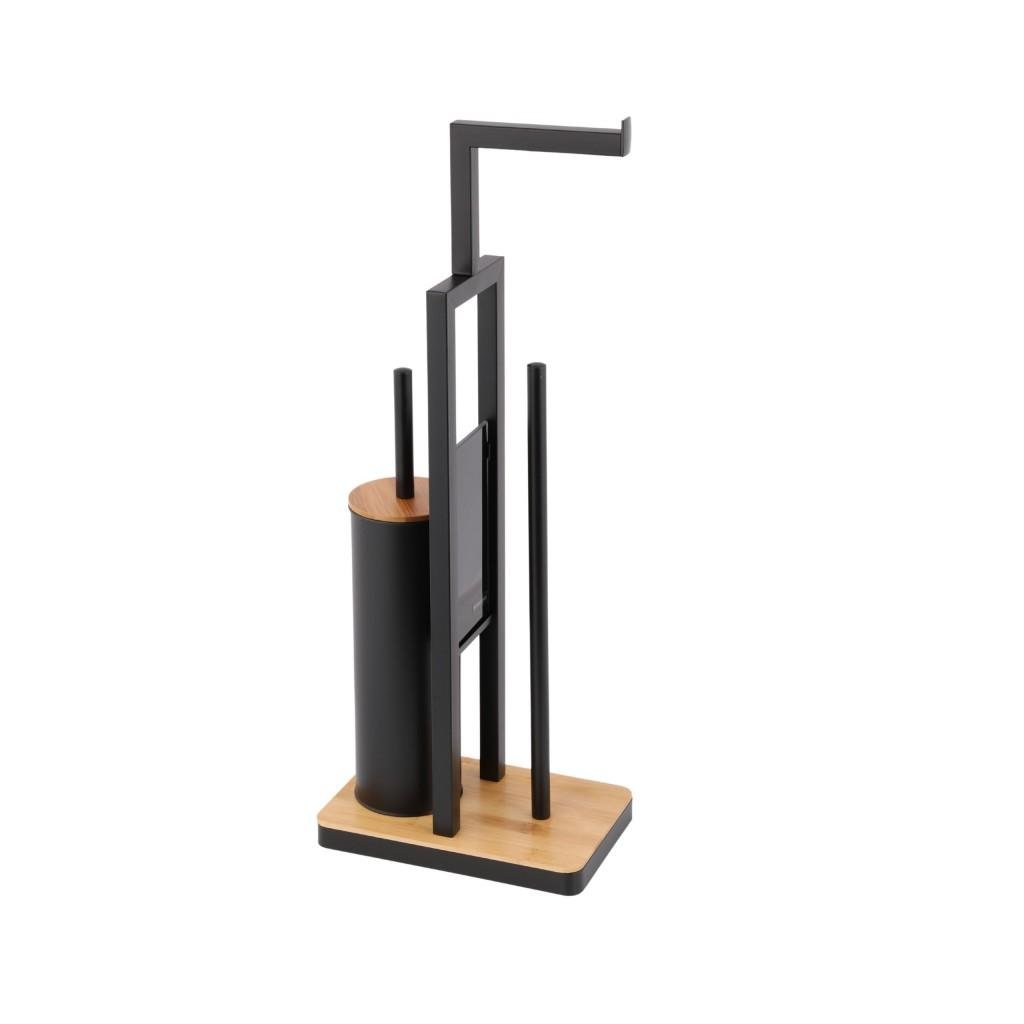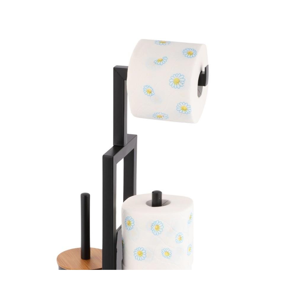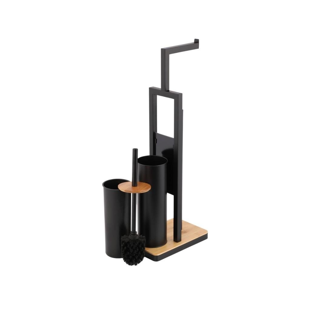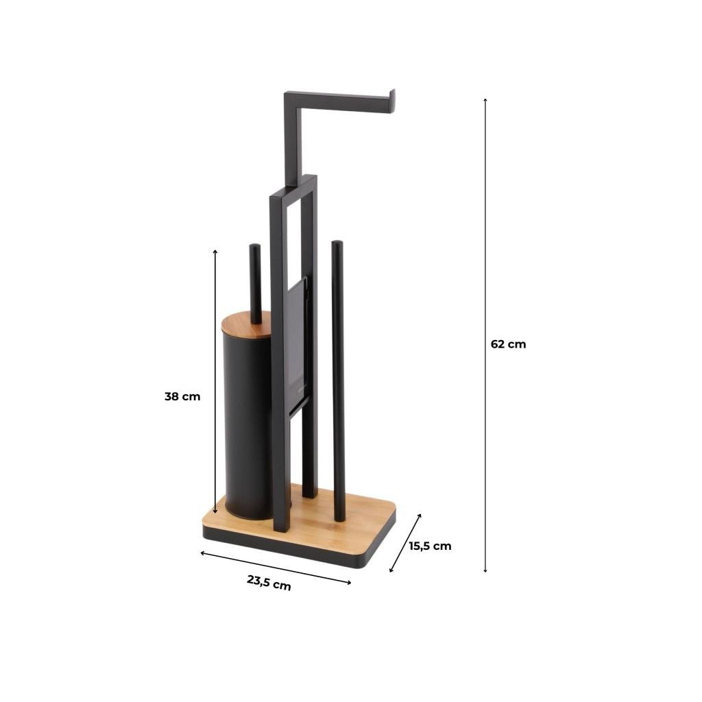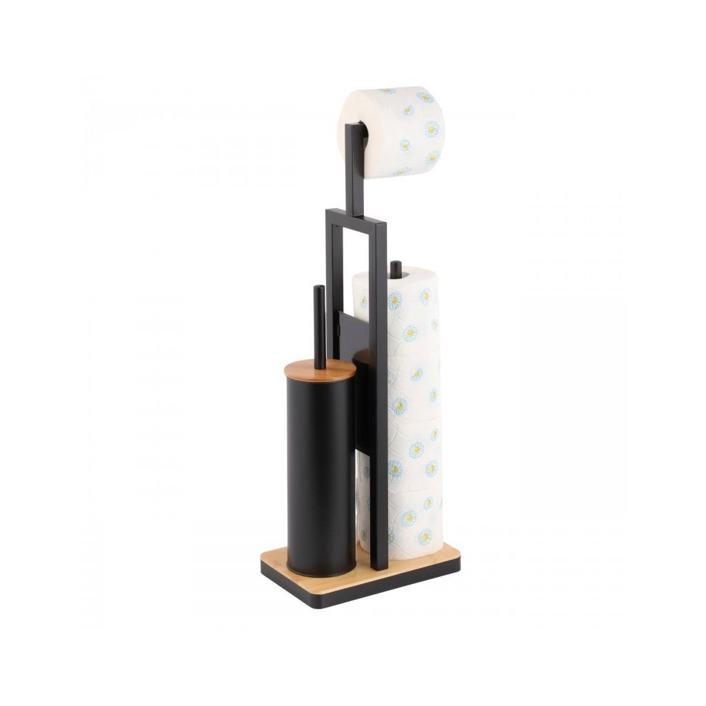 Erga Madrid, suport pentru hârtie igienică cu perie de toaletă și dozator, maro-negru mat, ERG-YKA-P.MADRYT-BLK