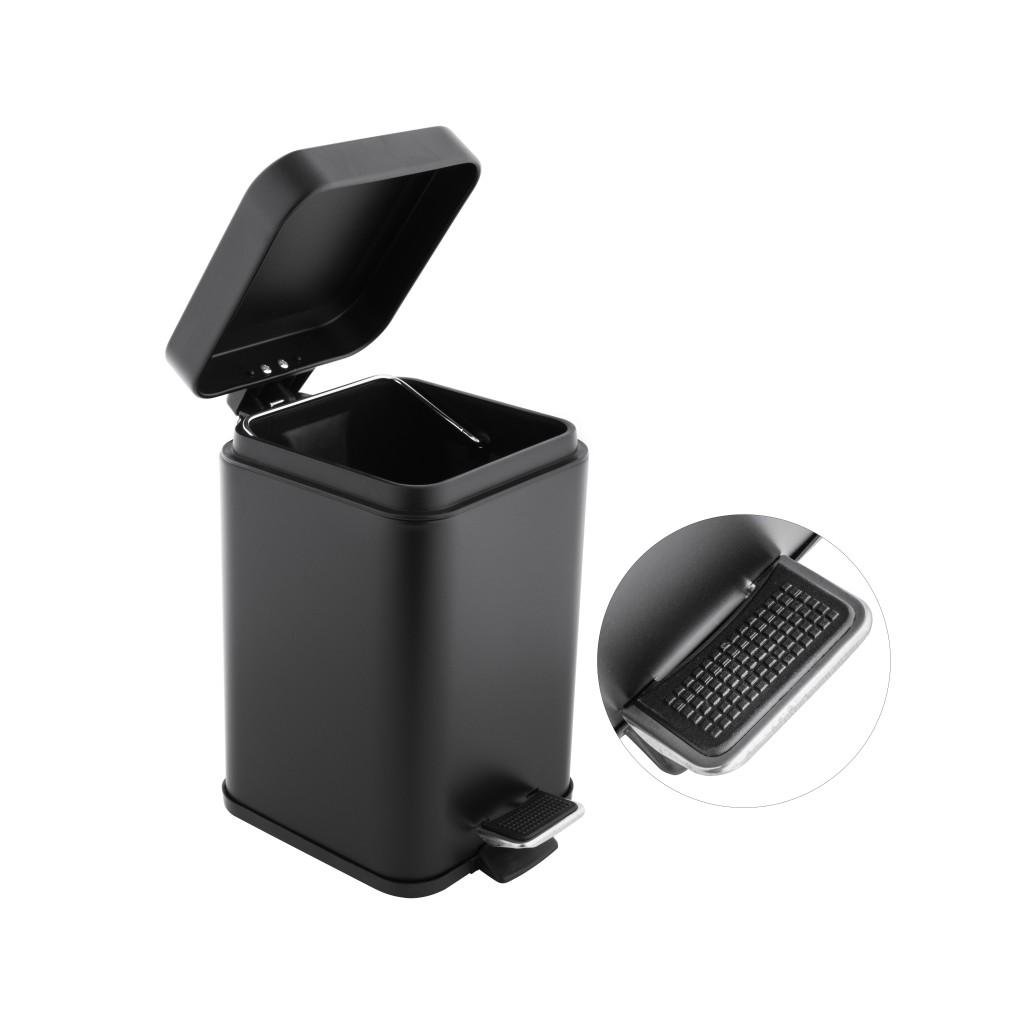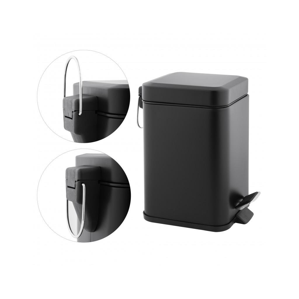 Erga Muti, coș de gunoi pătrat 3l pentru picioare, închidere Soft-Close, negru mat, ERG-YKA-CH.MUTI-SC-BLK