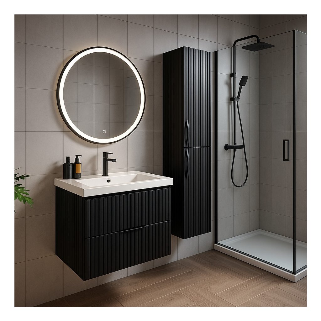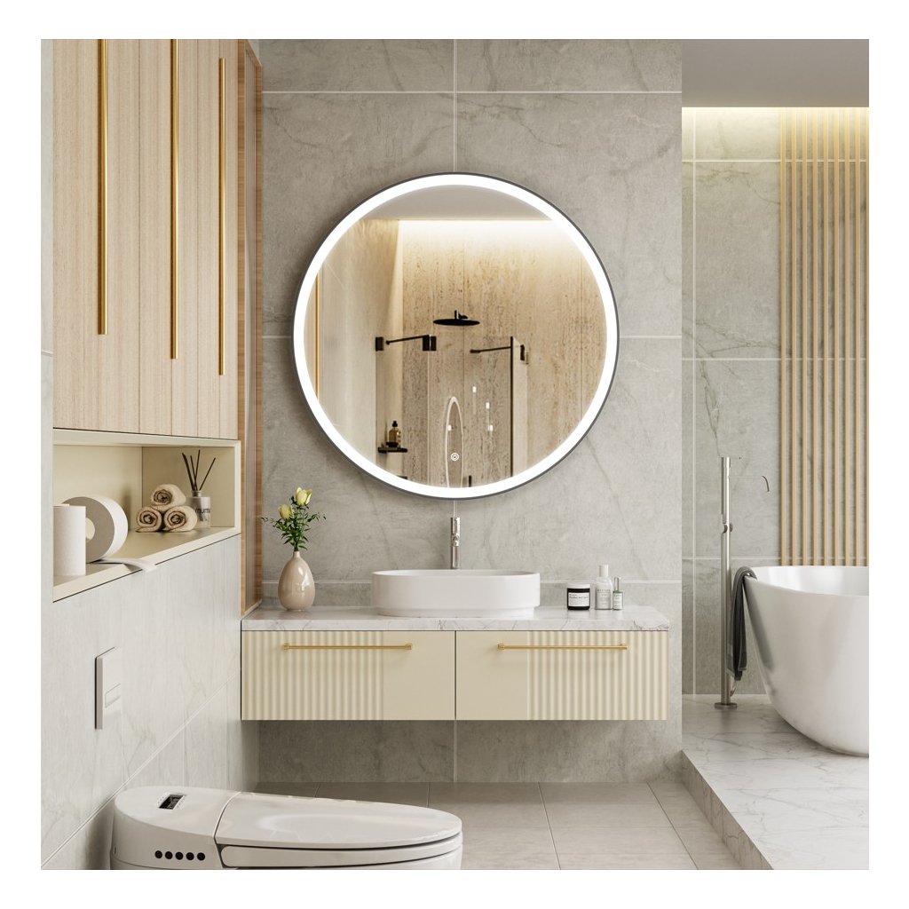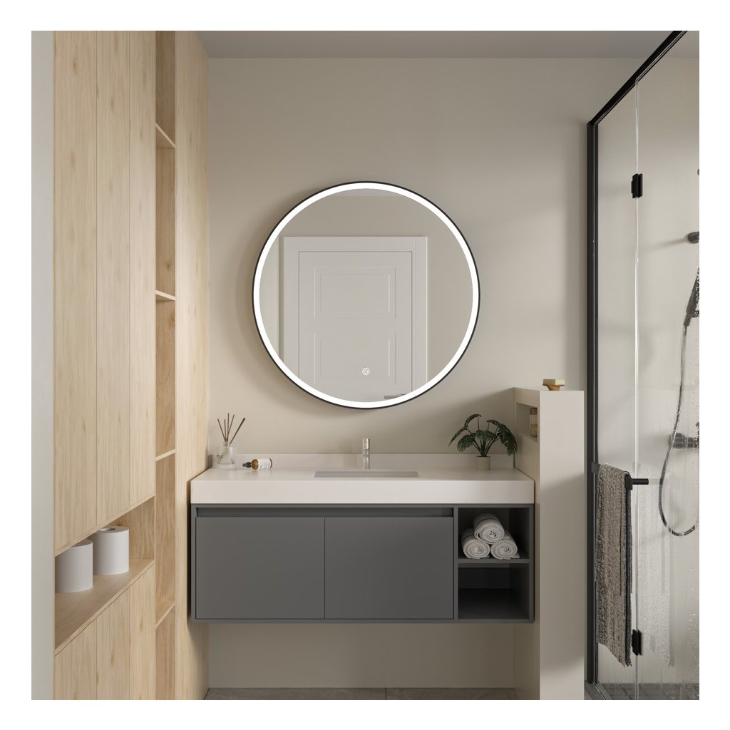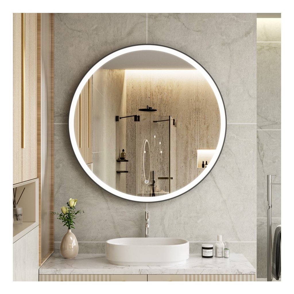 - Tip: Oglindă LED cu iluminare frontală în ramă de aluminiu negru