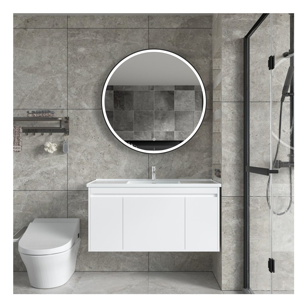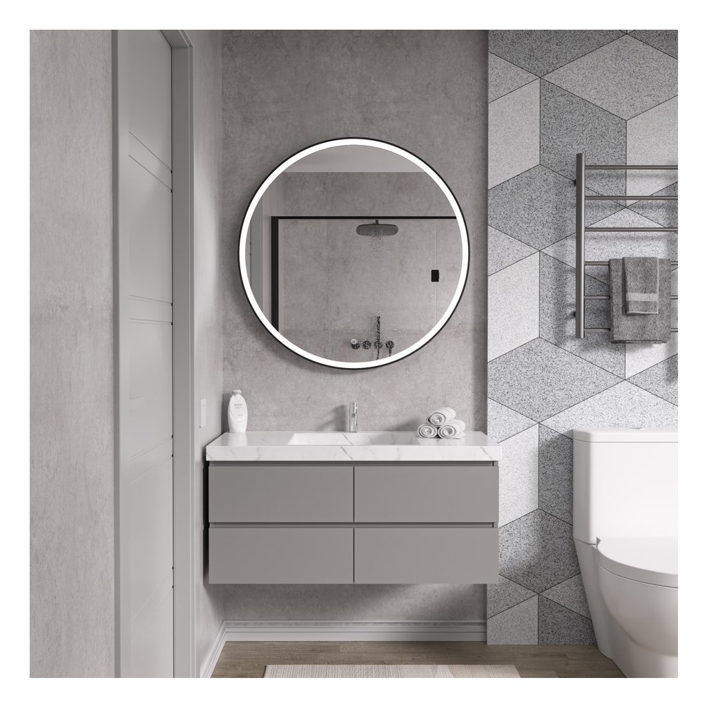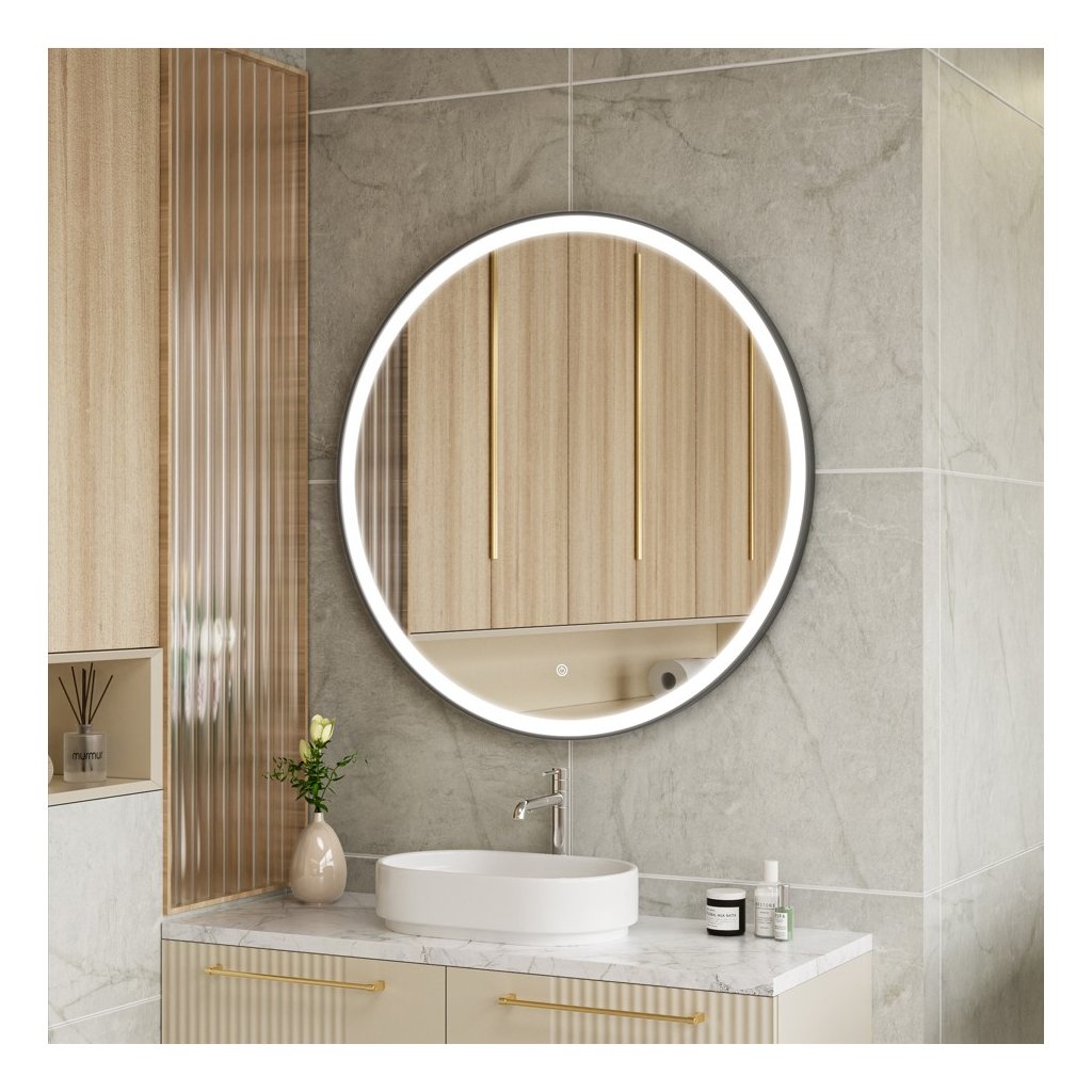 Erga Olivia, oglindă rotundă LED 100cm, ramă metalică neagră, 2300 lm, 6500K, iluminare frontală, ERG-V01-202-1010-BK