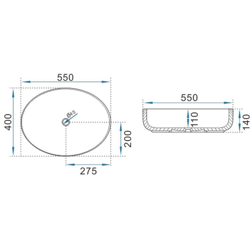 Erga Oval, lavoar de blat 550x400x140 mm, alb lucios, ERG-V03-OVAL55-WH