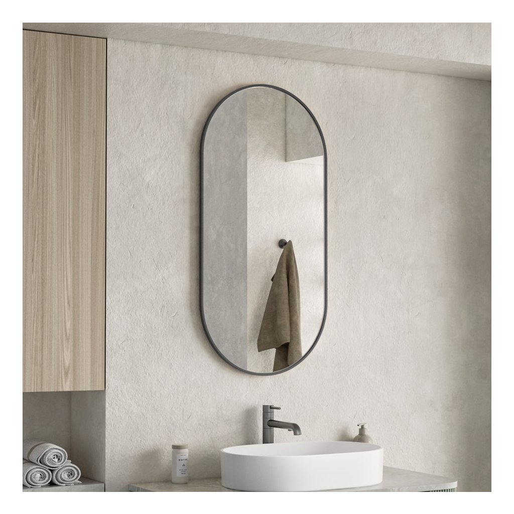 Erga Oval, oglindă ovală 50x100cm, ramă neagră, ERG-V01-OVAL-5010-BK