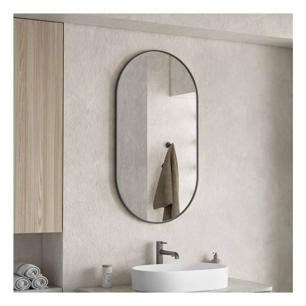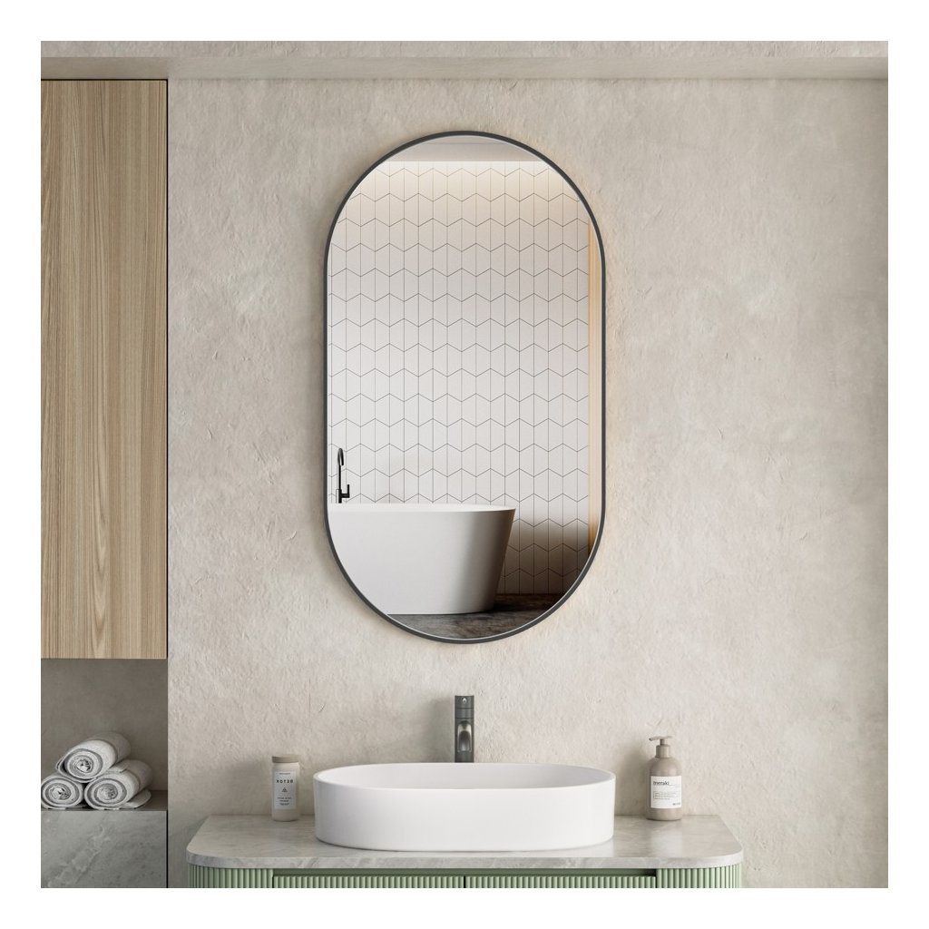 Erga Oval, oglindă ovală 55x100cm, ramă neagră, ERG-V01-OVAL-5510-BK