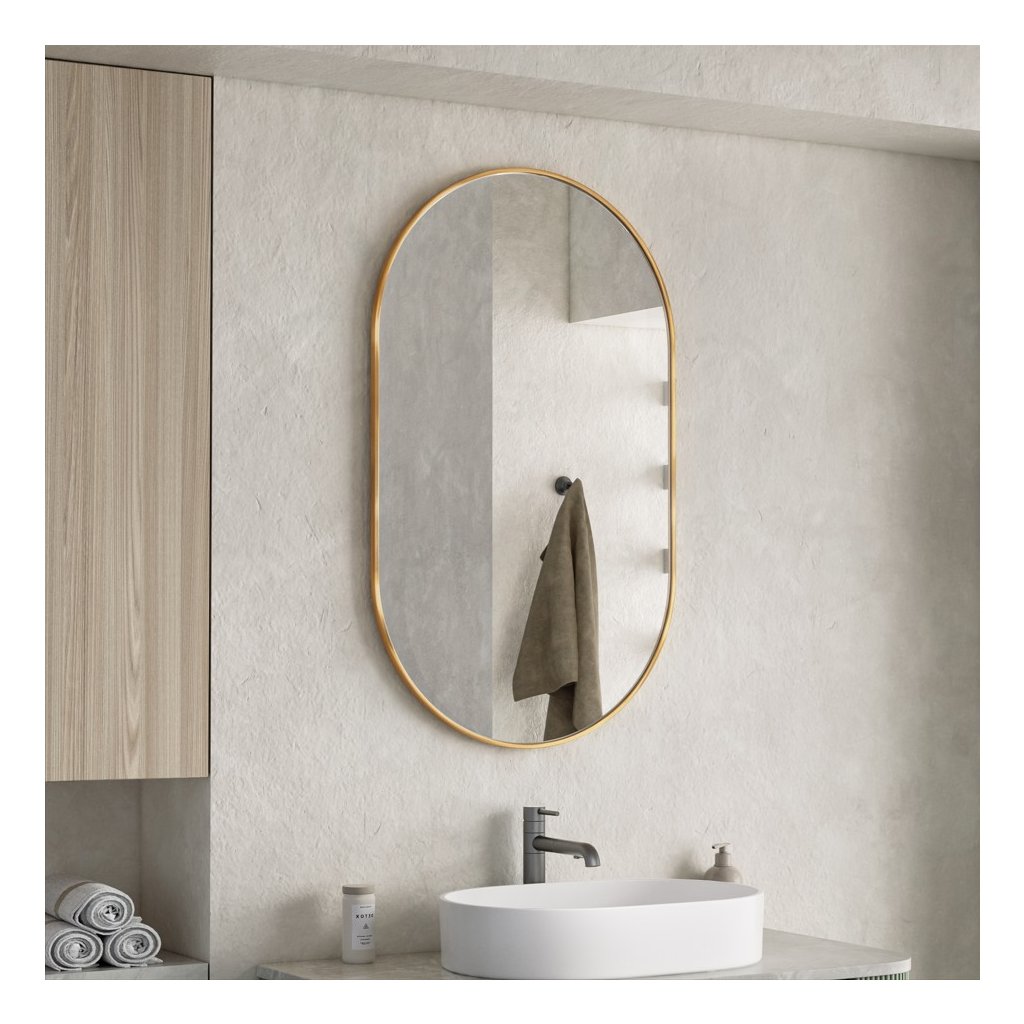 ![]() | Formă ovală: Principalul avantaj al unei oglinzi ovale în baie este că înmoaie estetica vizuală a spațiului și îi conferă un aspect mai organic și mai puțin auster, mai ales în comparație cu oglinzile tradiționale dreptunghiulare sau pătrate. Marginile curbate ajută la mărirea vizuală a băilor mai mici, deoarece nu separă peretele la fel de brusc ca ramele pătrate. Forma ovală se potrivește unei varietăți de stiluri interioare - de la minimalism modern la tradițional și art deco. Se combină bine cu liniile rotunjite ale altor corpuri de iluminat, cum ar fi chiuvetele sau căzile de baie. | |