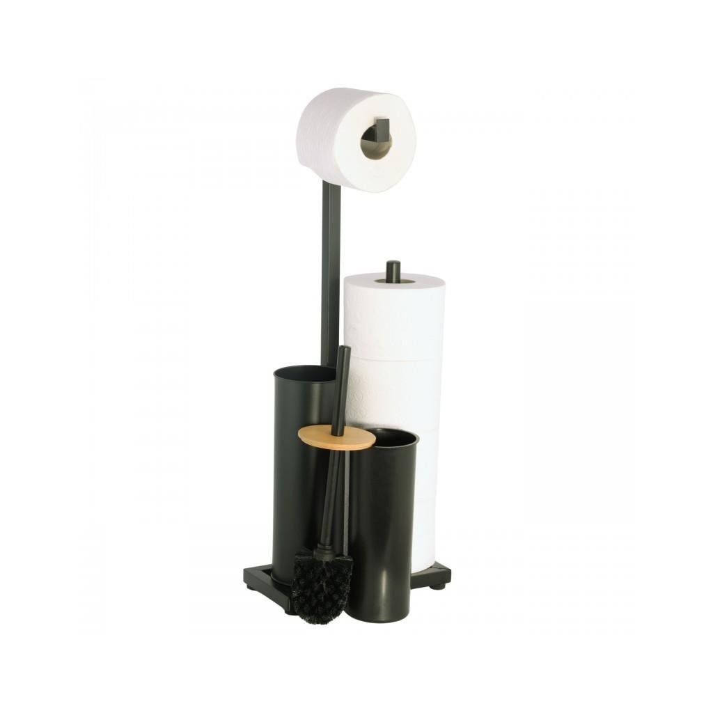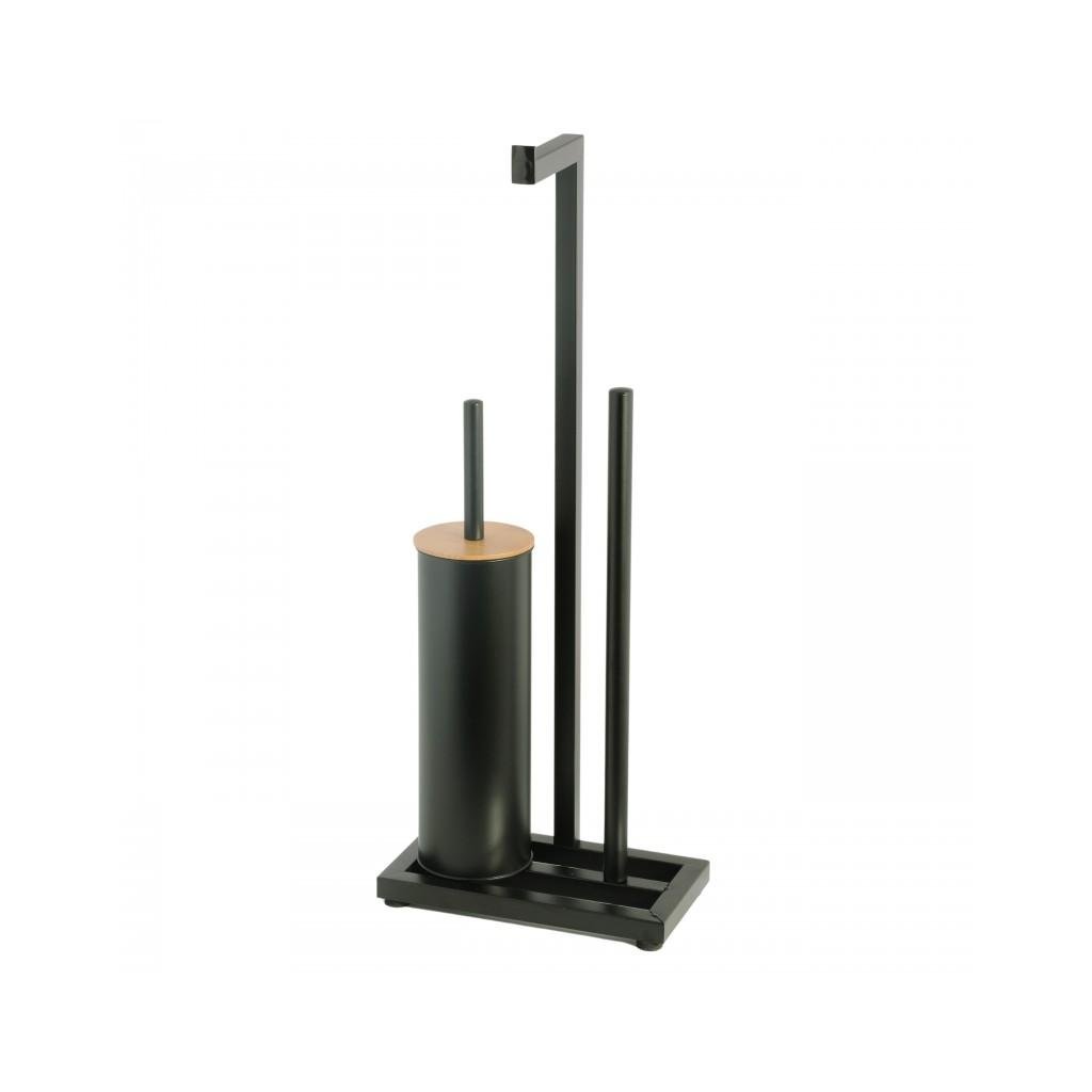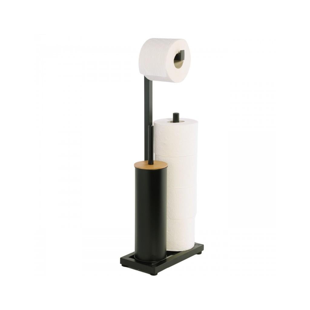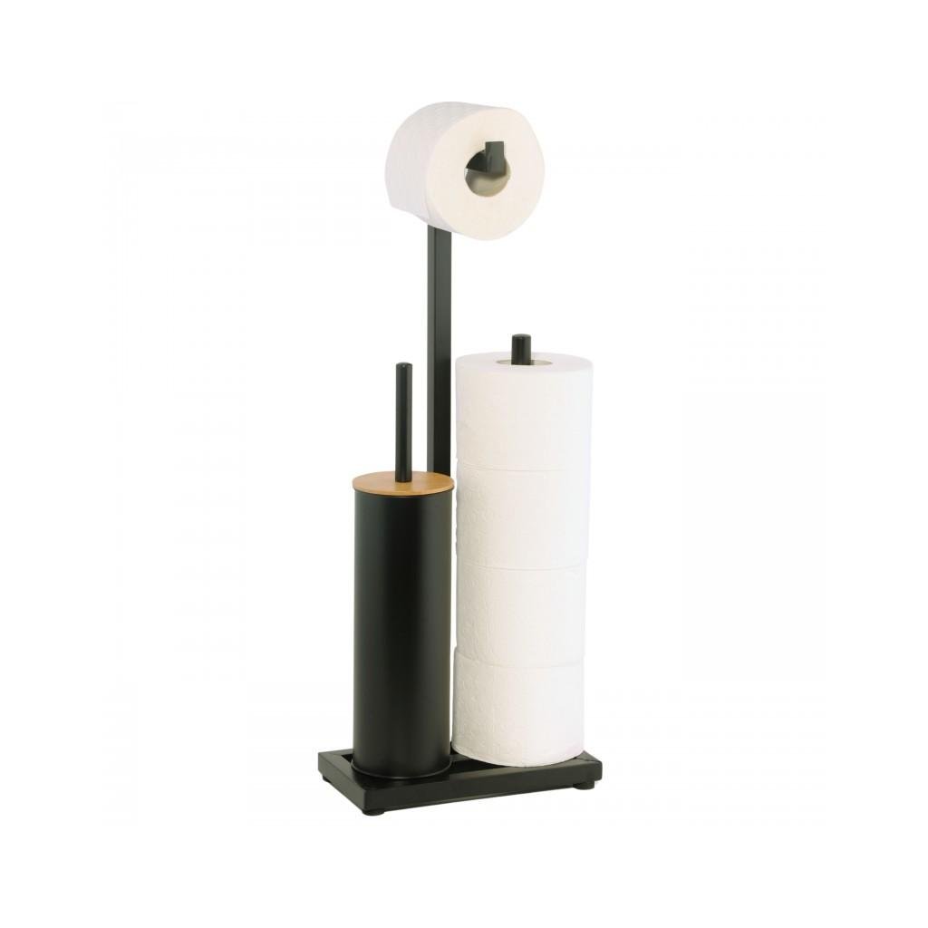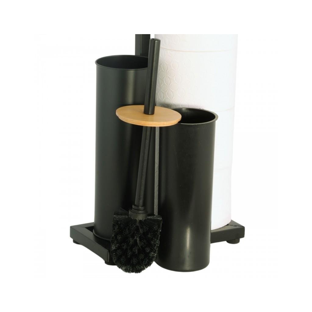 Erga Pap, suport pentru hârtie igienică cu perie de toaletă și dozator, negru-maro, ERG-YKA-P.PAP-WC-BLK