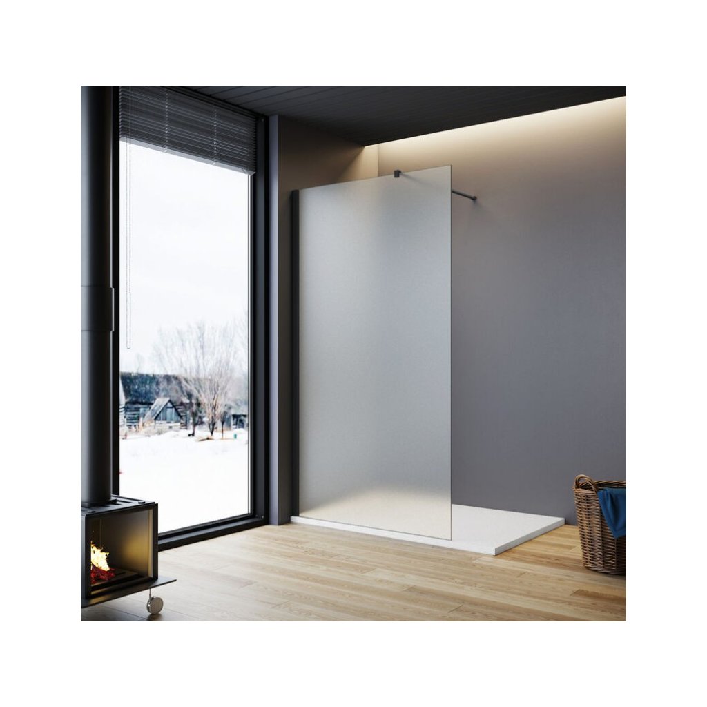 Erga Paris, Paravan de duș walk-in 100x200 cm, sticlă mată 8mm, profil negru, ERG-V02-PARIS-100x200-FR-BK