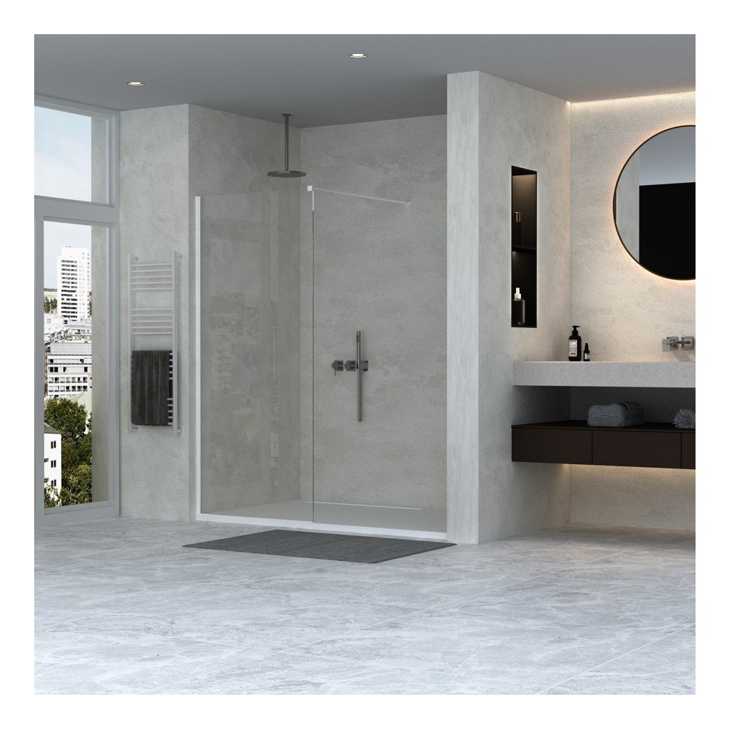 Erga Paris, Paravan de duș walk-in 110x200 cm, sticlă transparentă de 8 mm, profil alb mat, ERG-V02-PARIS-110x200-CL-WH