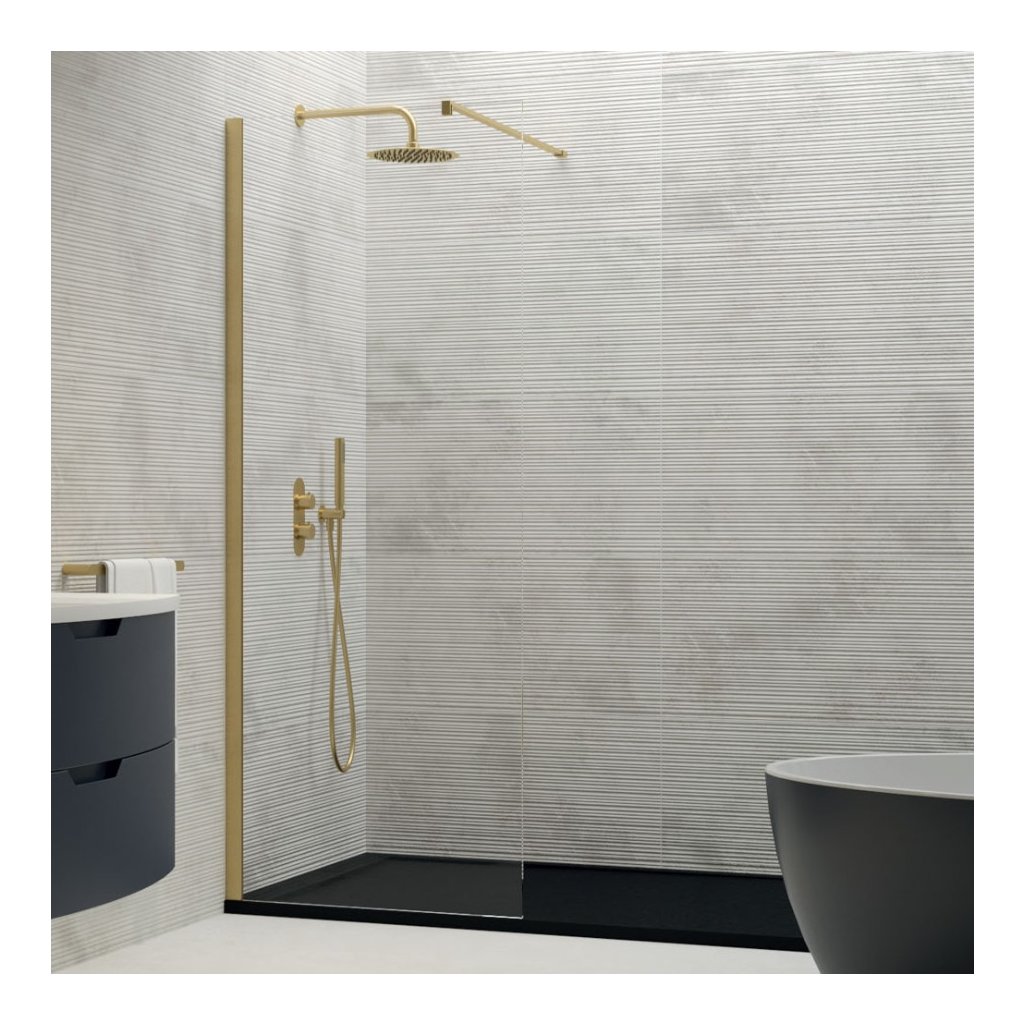 Erga Paris, Paravan de duș Walk-In 110x200 cm, sticlă transparentă de 8 mm, profil auriu lucios, ERG-V02-PARIS-110x200-CL-GD