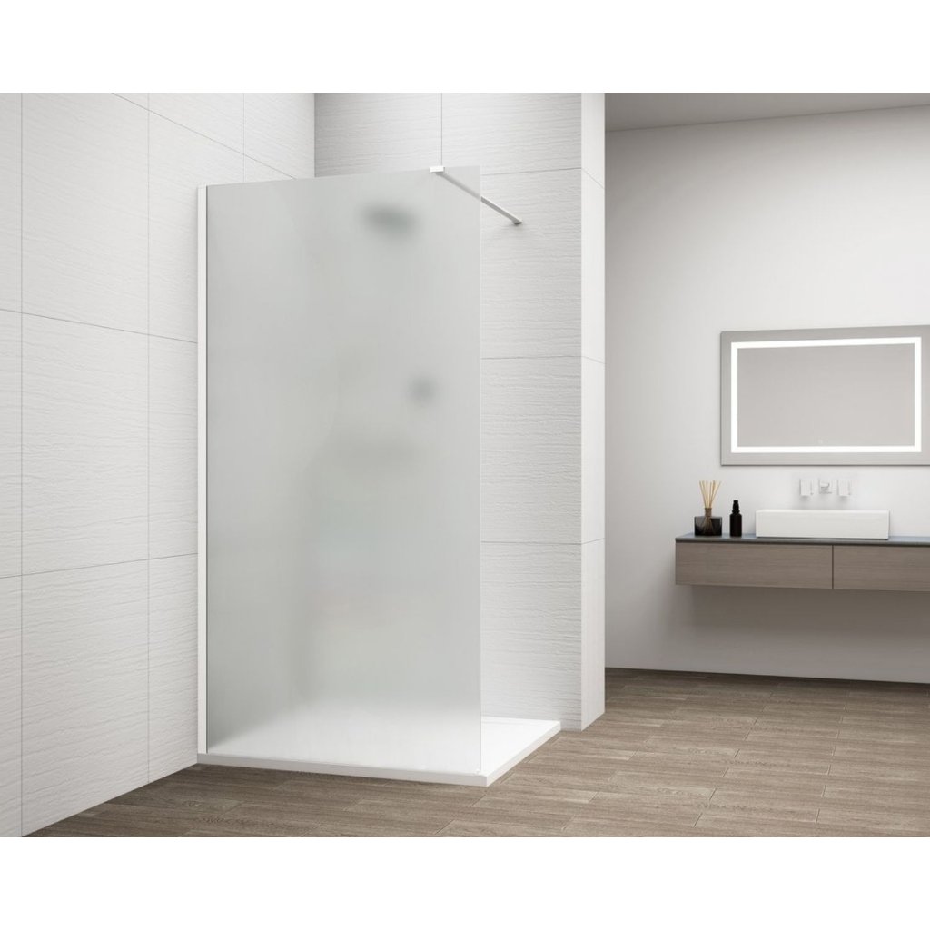 Erga Paris, Paravan de duș walk-in 130x200 cm, sticlă mată 8mm, profil alb, ERG-V02-PARIS-130x200-FR-WH