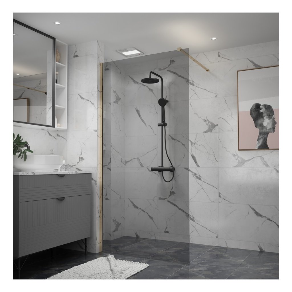 Erga Paris, Paravan de duș walk-in 150x200 cm, sticlă gri 8mm, profil auriu lucios, ERG-V02-PARIS-150x200-GR-GD