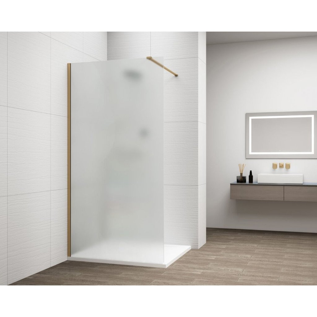 Erga Paris, Paravan de duș Walk-In 50x200 cm, sticlă mată 8mm, profil auriu mat, ERG-V02-PARIS-050x200-FR-GB