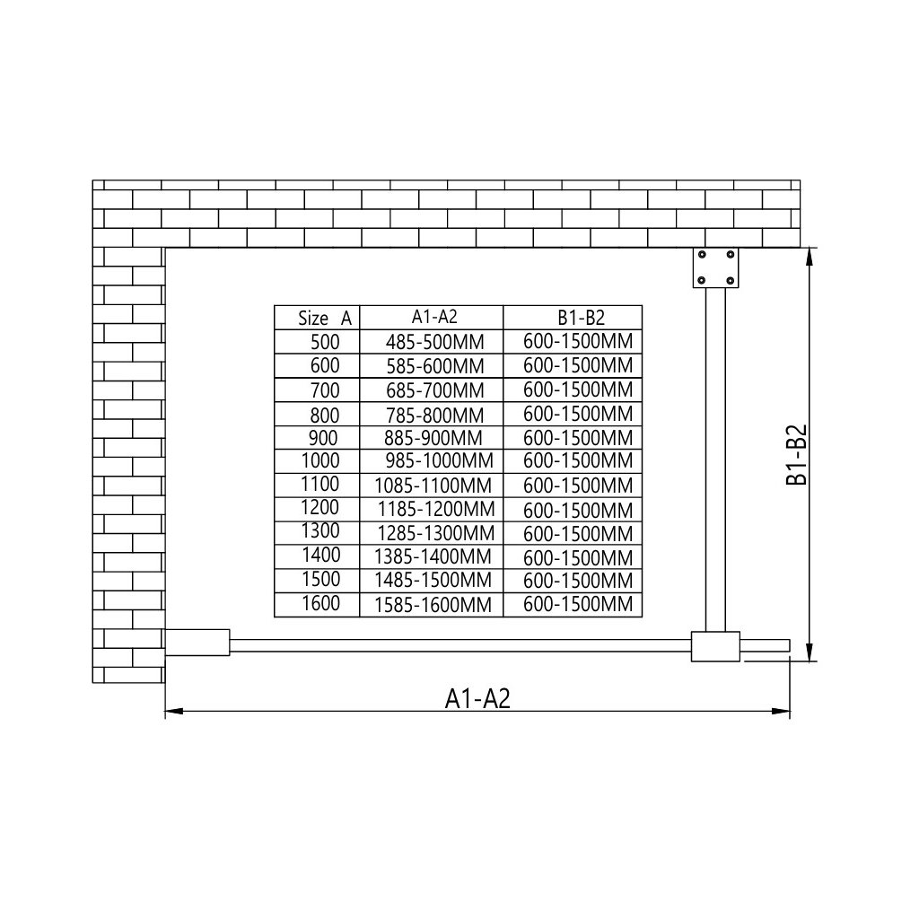 | Tip: | Paravan de duș – 1 panou, montaj pe perete, cu bară de susținere perpendiculară. |