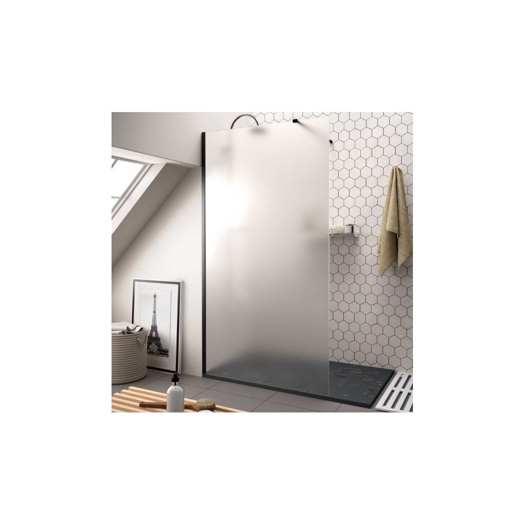 Erga Paris, Paravan de duș walk-in 70x200 cm, sticlă mată 8mm, profil negru, ERG-V02-PARIS-070x200-FR-BK