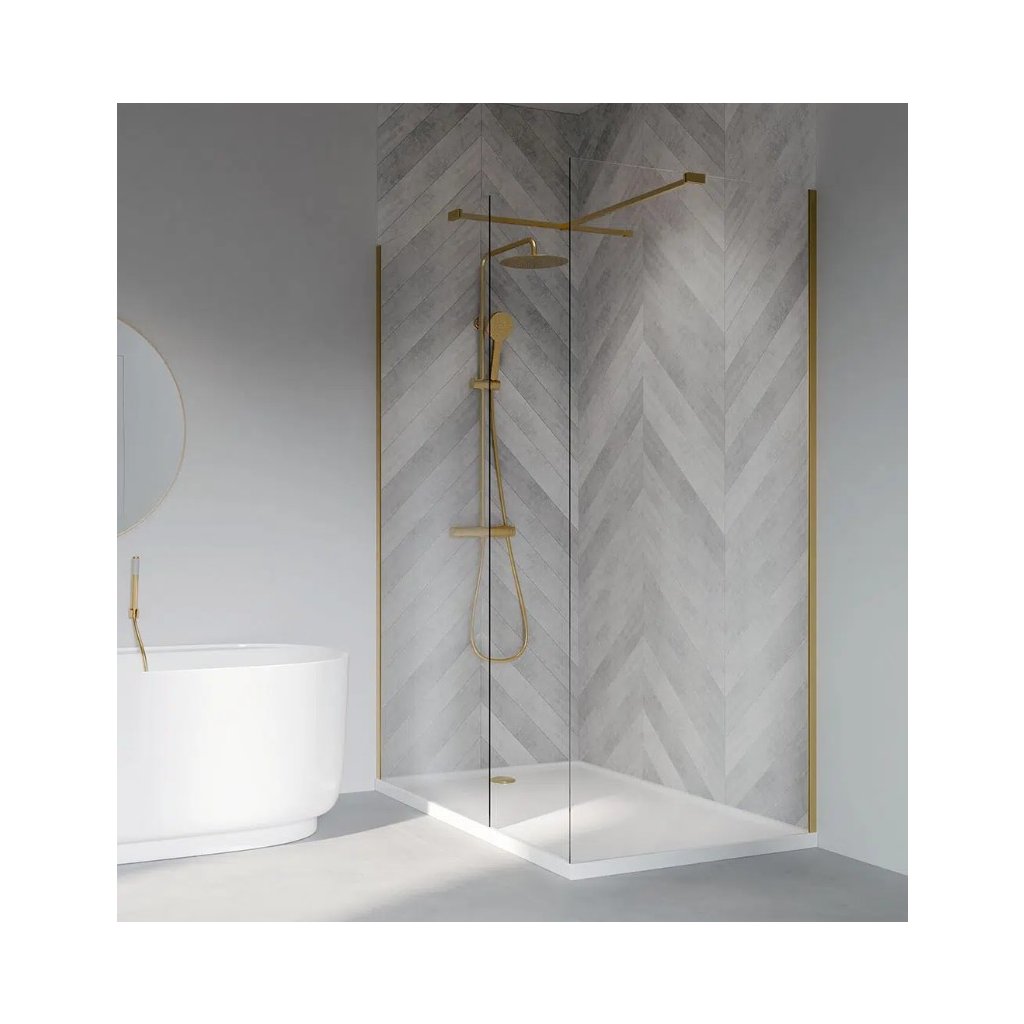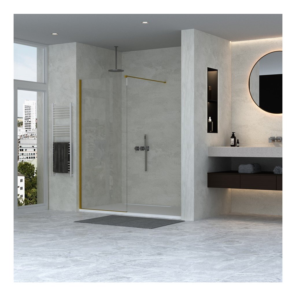 Erga Paris, Paravan de duș Walk-In 80x200 cm, sticlă transparentă de 8 mm, profil auriu mat, ERG-V02-PARIS-080x200-CL-GB