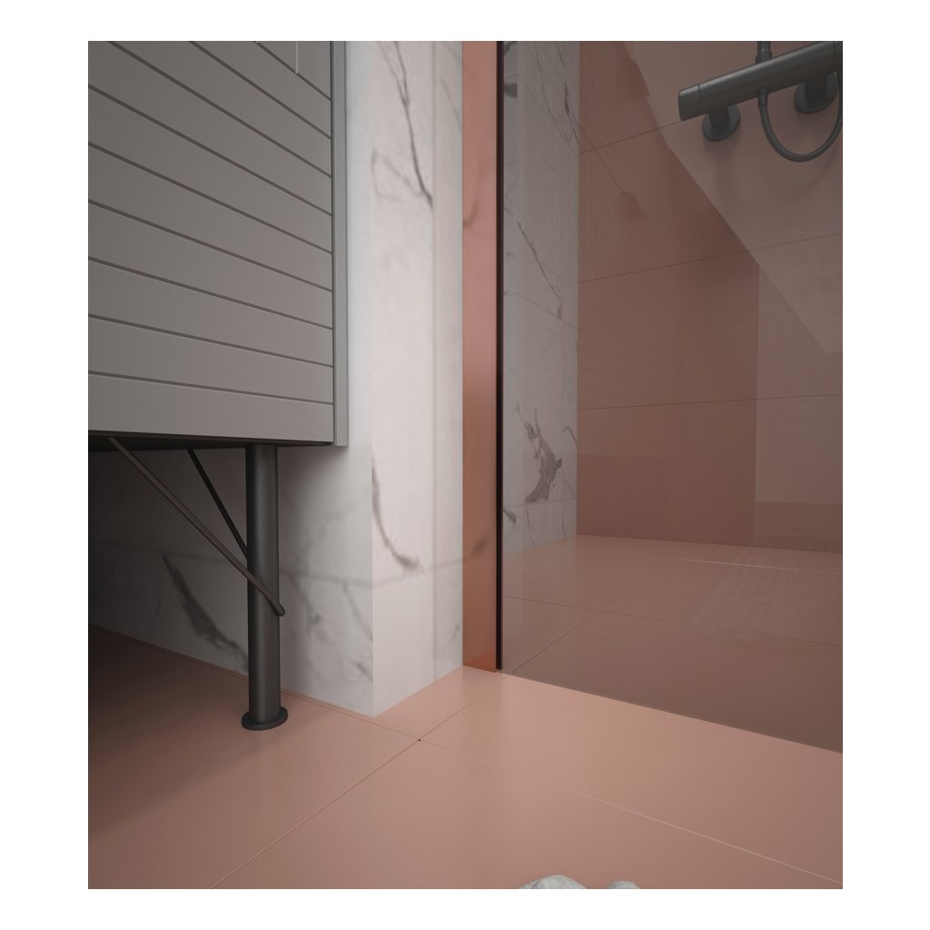 Erga Paris, Paravan de duș Walk-In 90x200 cm, sticlă gri 8mm, profil mat cupru, ERG-V02-PARIS-090x200-GR-CO