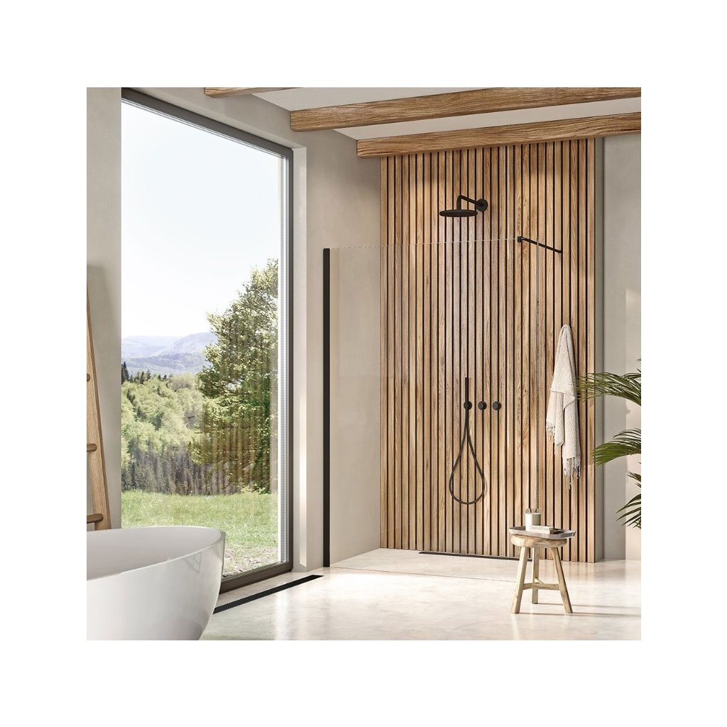 Erga Paris, sina profil pentru paravane de dus cu sticla grosime 8mm, lungime 200cm, negru mat, ERG-V02-PARIS-PROFILE-BK