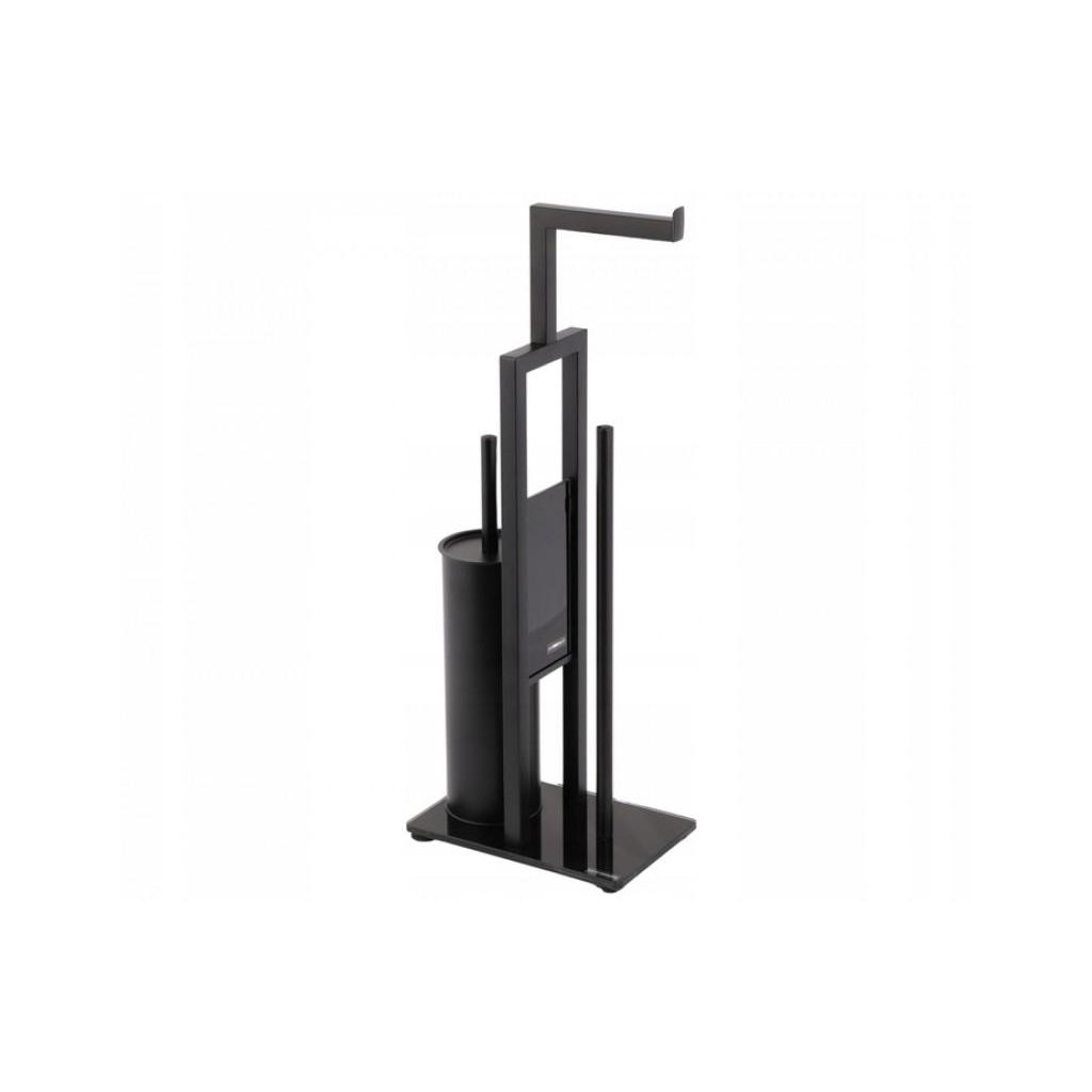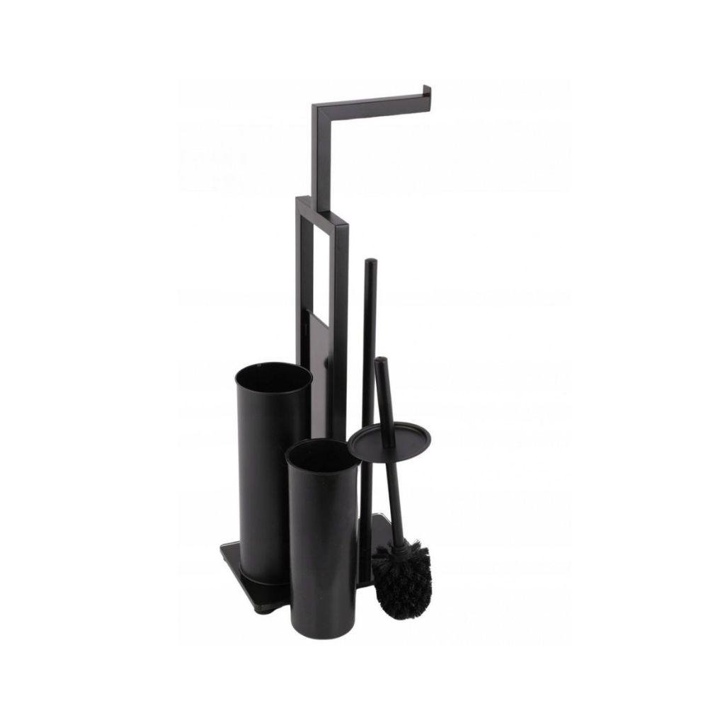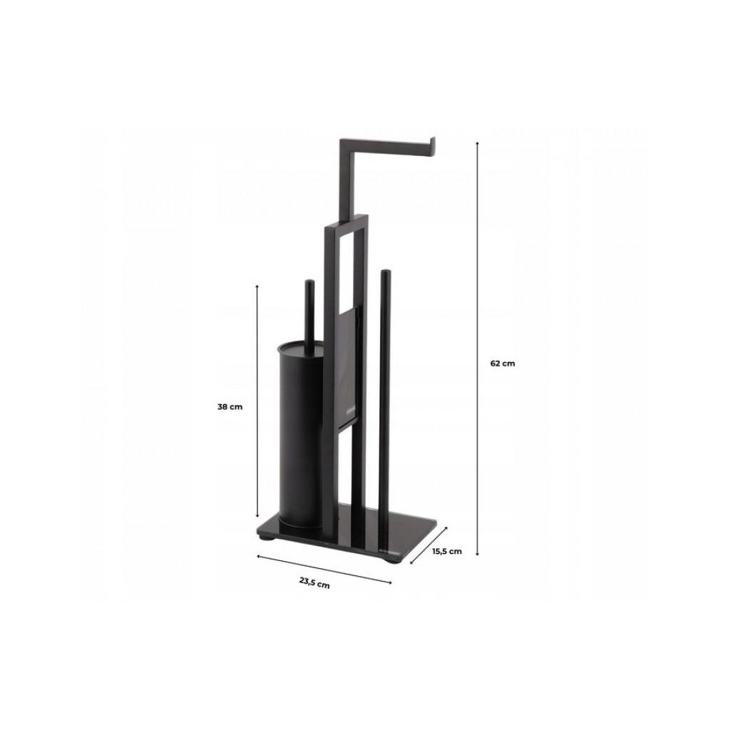 Erga Paulo, suport pentru hârtie igienică cu perie de toaletă și dozator, negru mat, ERG-YKA-P.PAULO-BLK