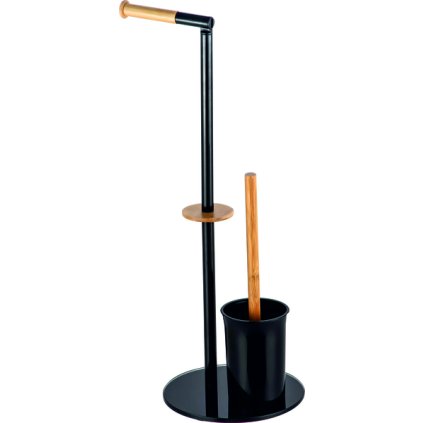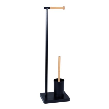 Suport pentru hârtie igienică Erga Plain, de sine stătător, cu perie de toaletă, negru-maro mat, ERG-07993