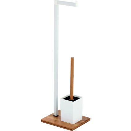 Suport pentru hârtie igienică Erga Plain, de sine stătător, cu perie de toaletă, alb maro-mat, ERG-07619