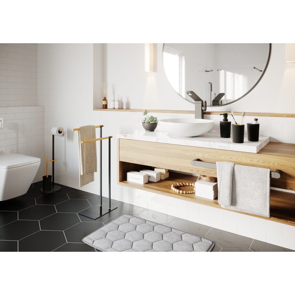 Suport pentru hârtie igienică Erga Plain, de sine stătător, cu perie de toaletă, negru-maro mat, ERG-07993
