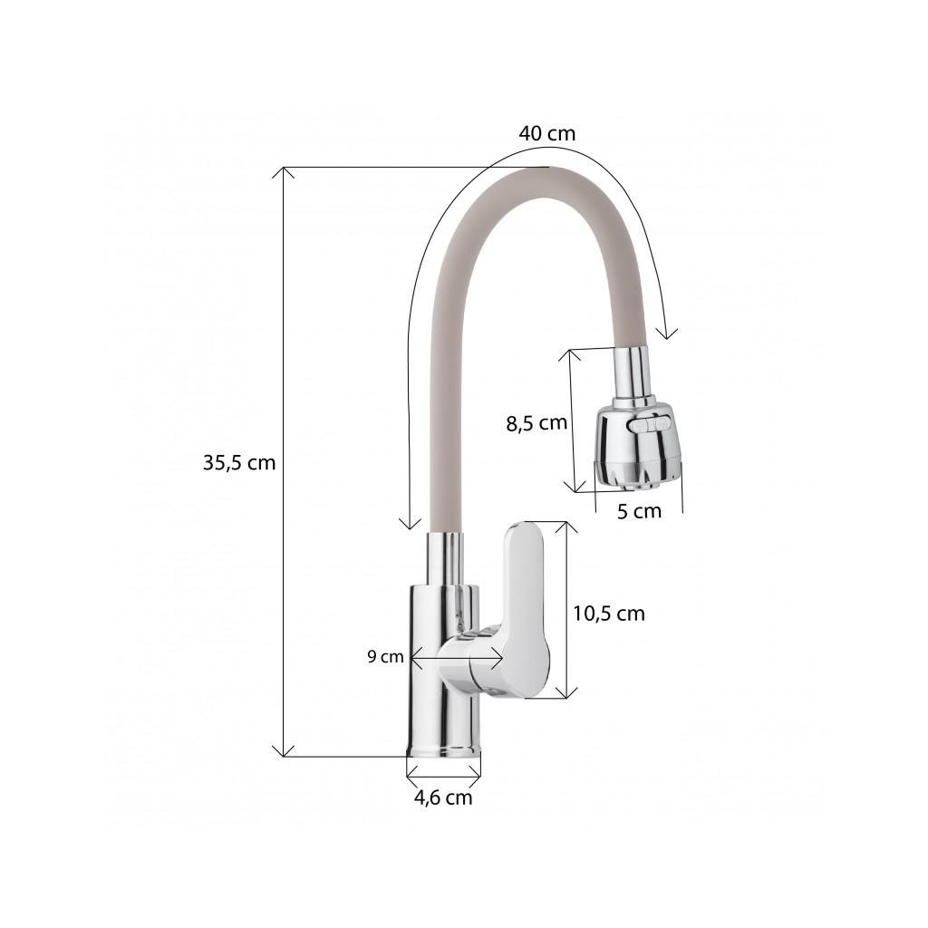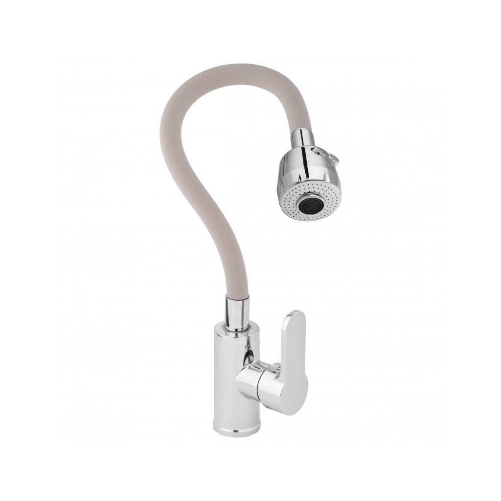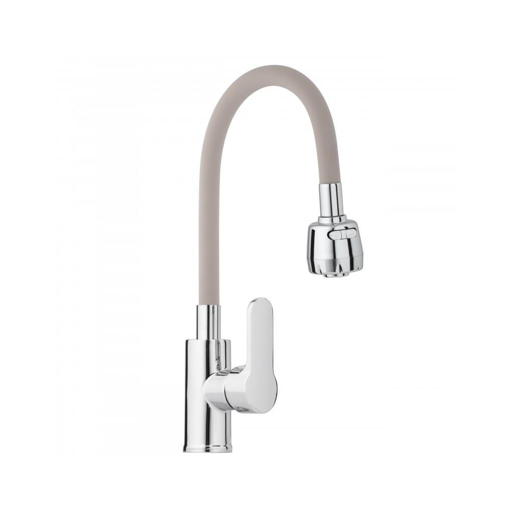 Erga Pogo, baterie pentru chiuvetă de sine stătătoare cu pulverizator și braț flexibil, bej-crom, ERG-YKA-BZ.POGO-BGE