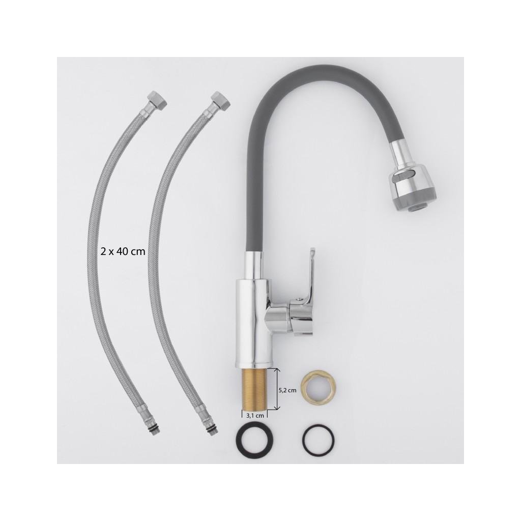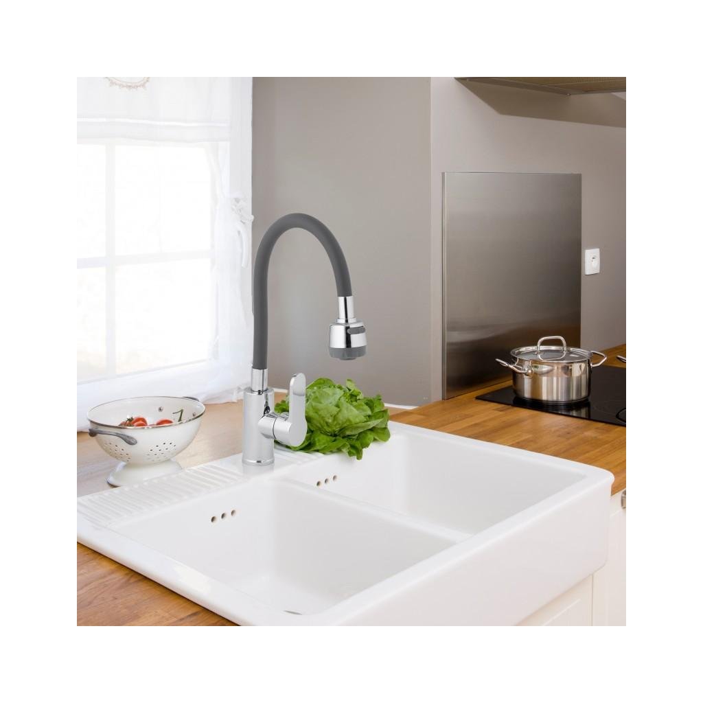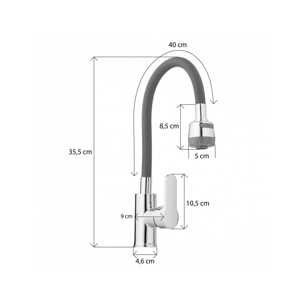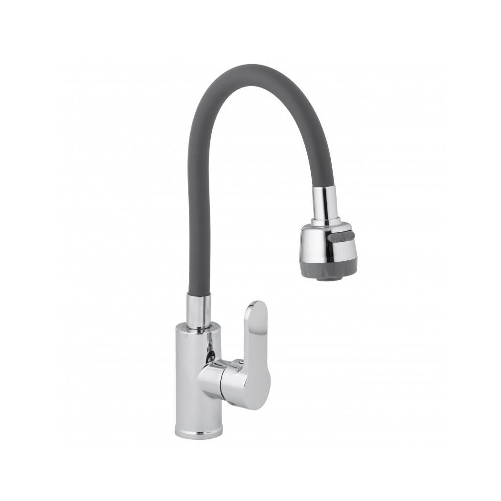 Erga Pogo, baterie pentru chiuvetă de sine stătătoare cu pulverizator și braț flexibil, gri-crom, ERG-YKA-BZ.POGO-GRY