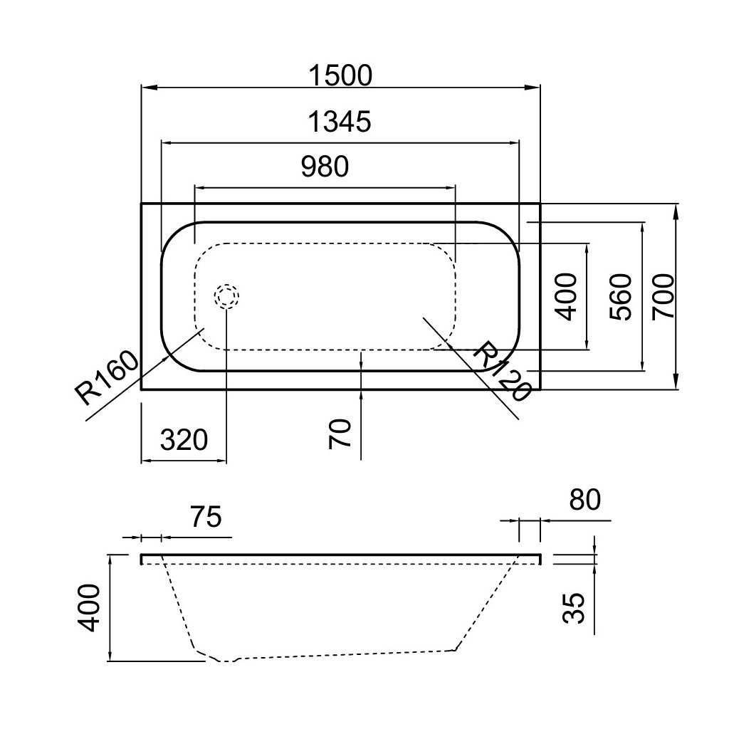 - Formă: Dreptunghiulară / Interior cadă ovală