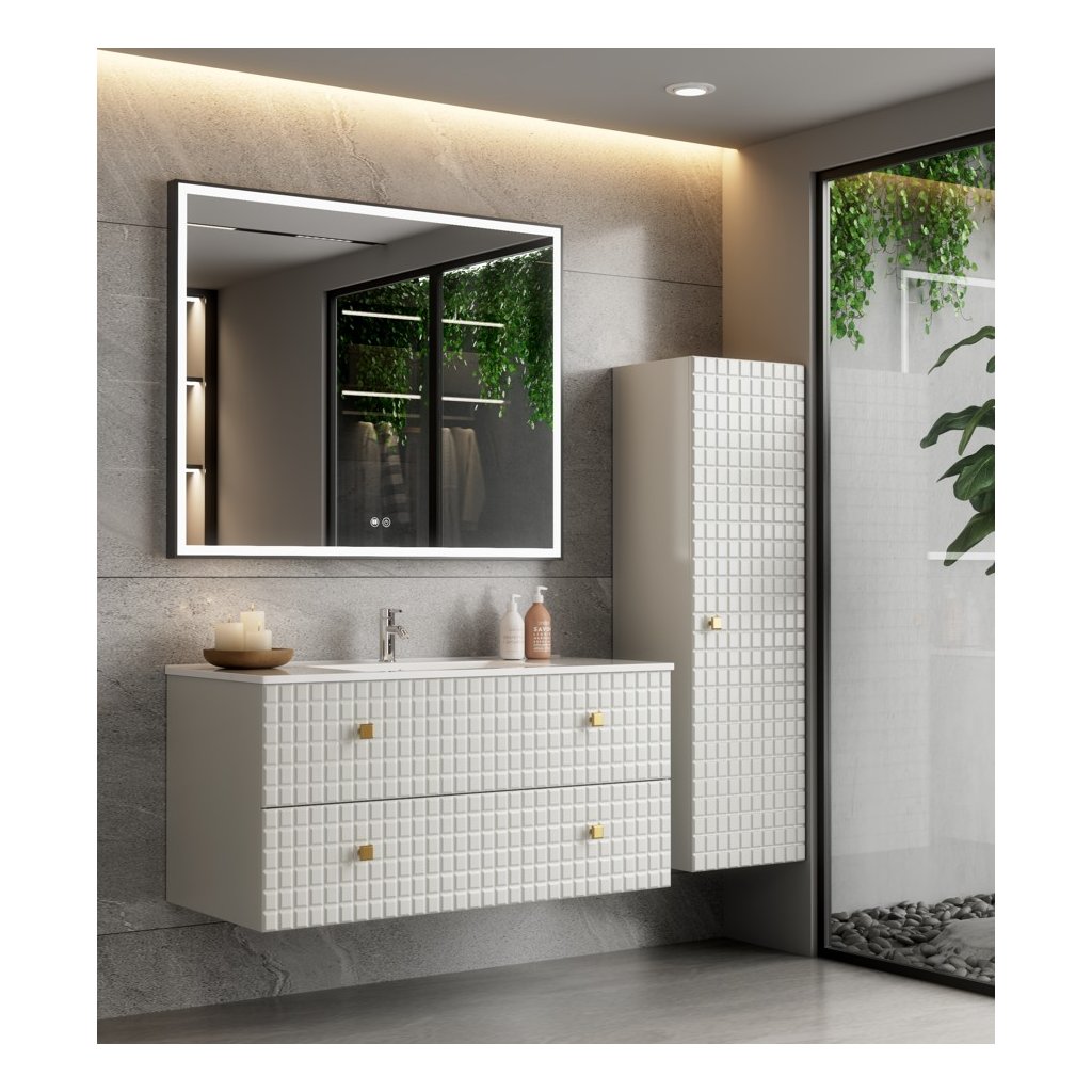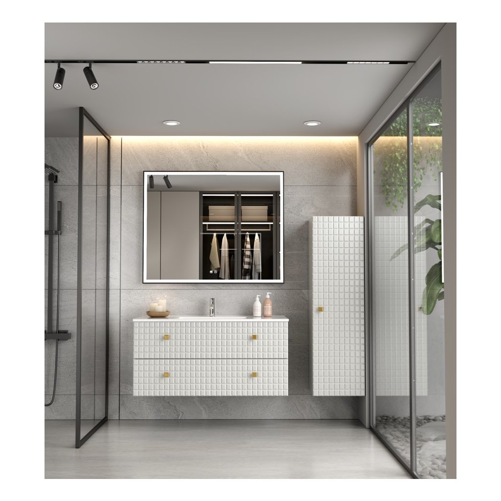 OGLINDA CU FUNCȚIE DE ÎNCĂLZIRE ANTI-ABUITĂ (FĂRĂ ABUR)Oglinda este, de asemenea, echipată cu iluminare LED integrată și încălzire alimentată de la rețea. Încălzirea oglinzii previne aburirea suprafeței acesteia. Oglinda este echipată cu o pernă încălzitoare care previne condensul pe oglindă și vă puteți vedea întotdeauna reflexia chiar și după un duș sau o baie. Funcția de încălzire poate fi activată cu un comutator tactil de pe oglindă. Butoanele tactile se aprind și devin albastre atunci când sunt apăsate, indicând că funcția este activă. | ![]() | |