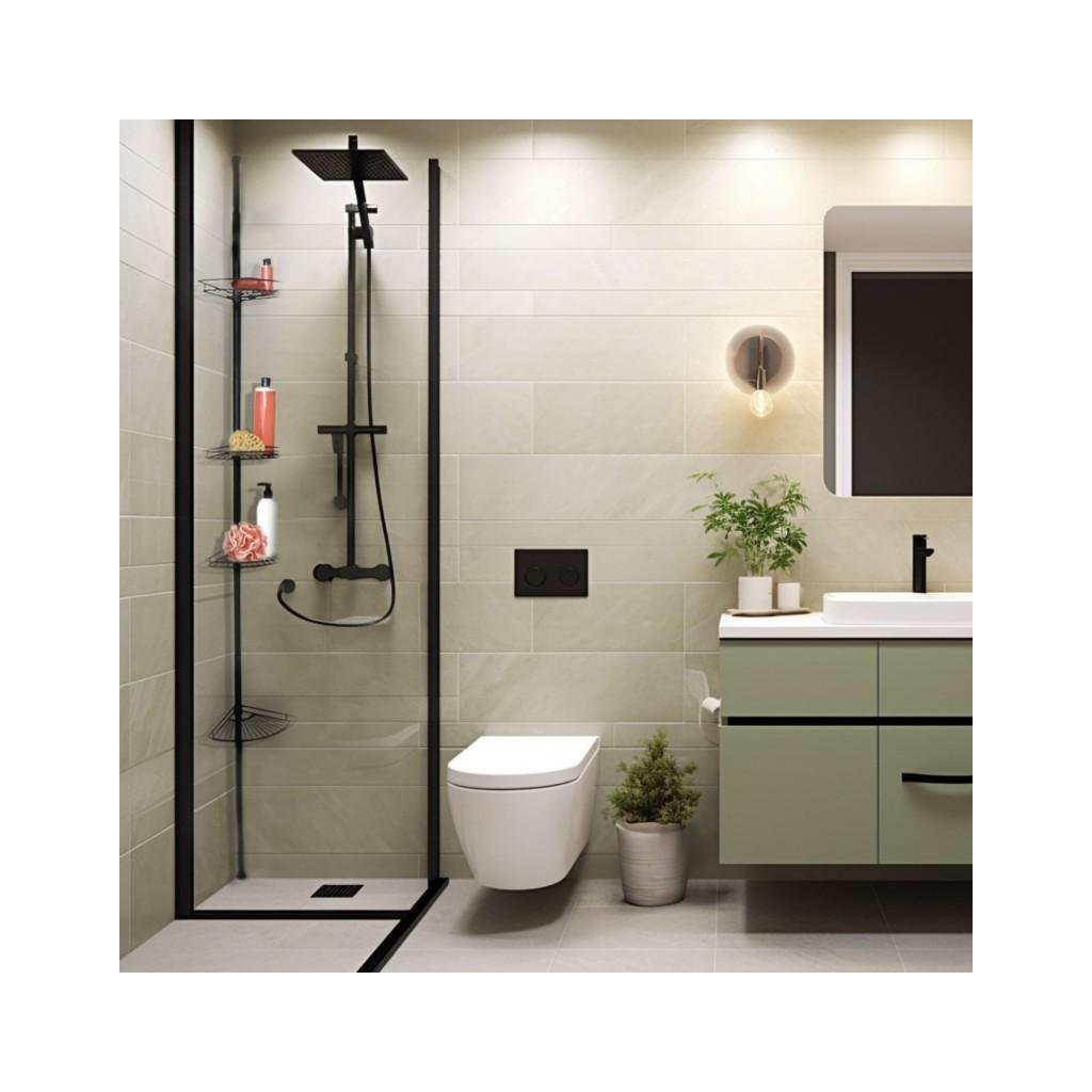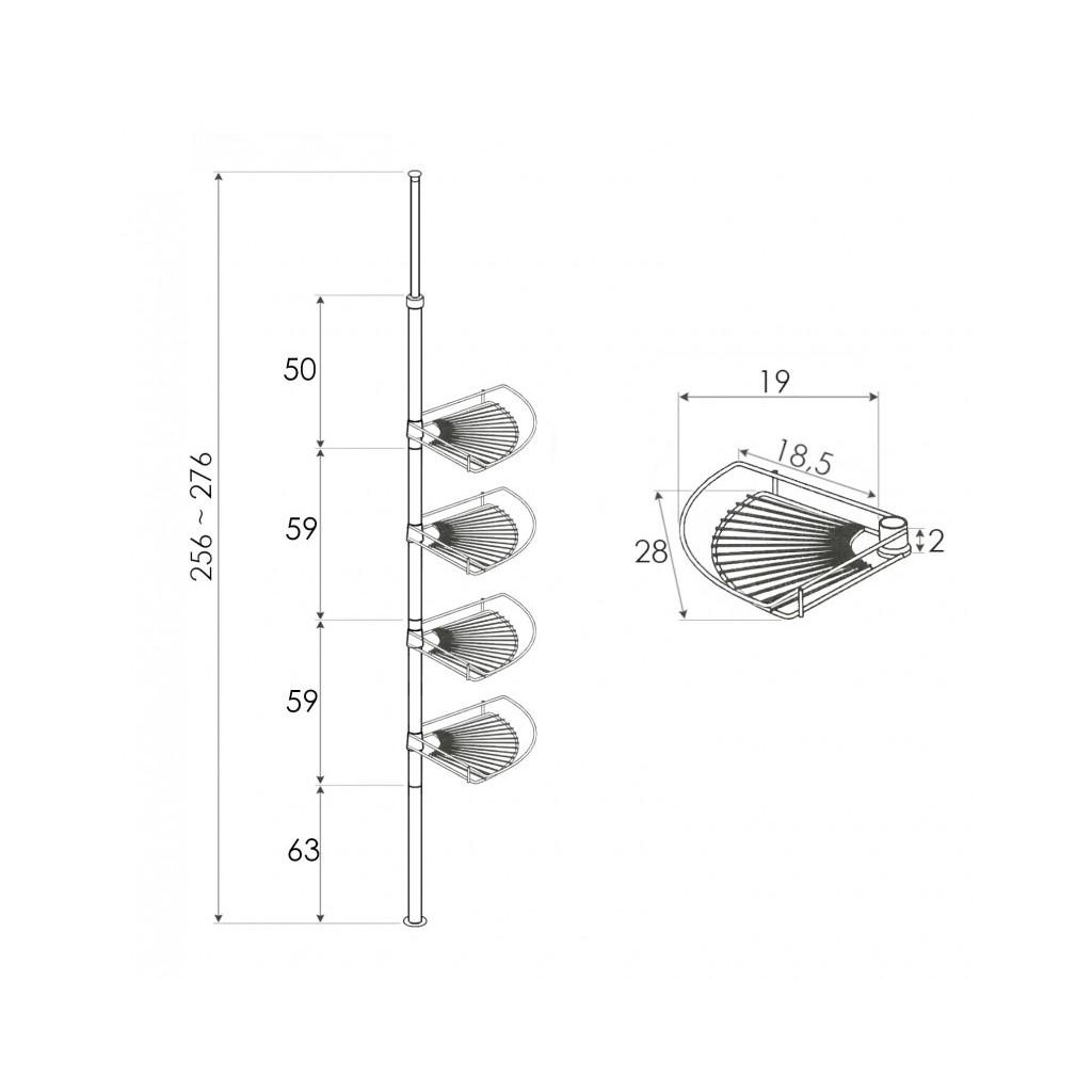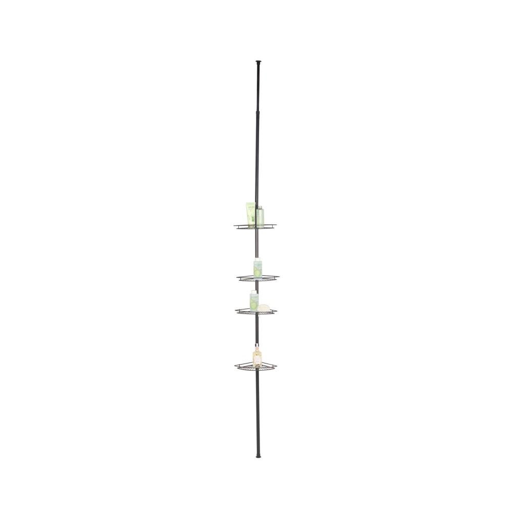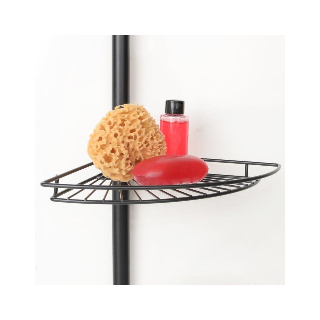 Raft de colț telescopic în negru. Ideal pentru instalare in coltul baii. Fabricat din oțel de înaltă calitate, acoperit cu pulbere. Raftul oferă suficient spațiu de depozitare pentru accesoriile de baie. Are 4 coșuri-rafturi de colț.