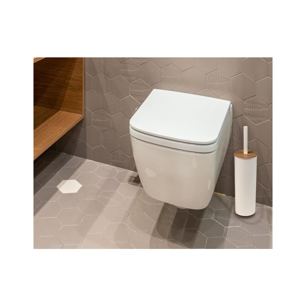 Erga Amba, perie de toaletă pătrată pentru picioare, alb mat-maro natural, ERG-YKA-PD.AMBA-WHT