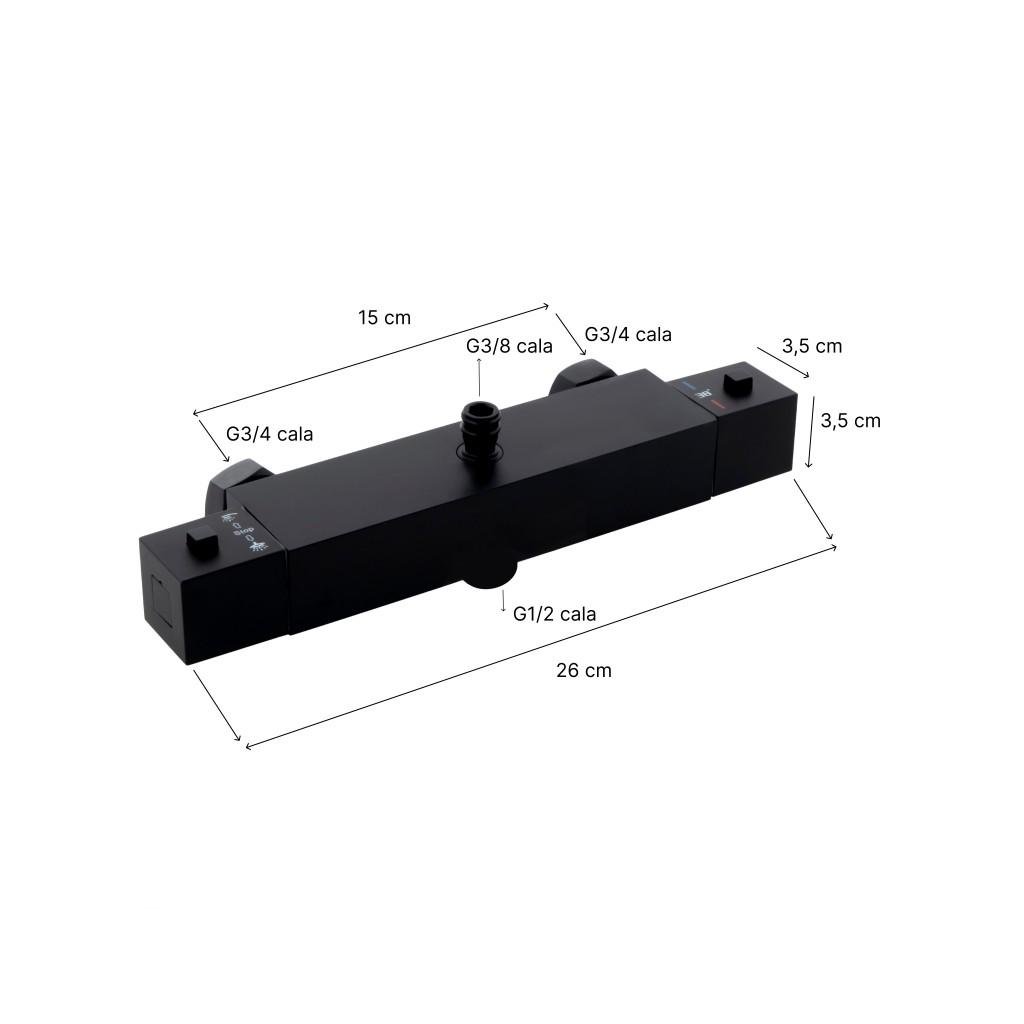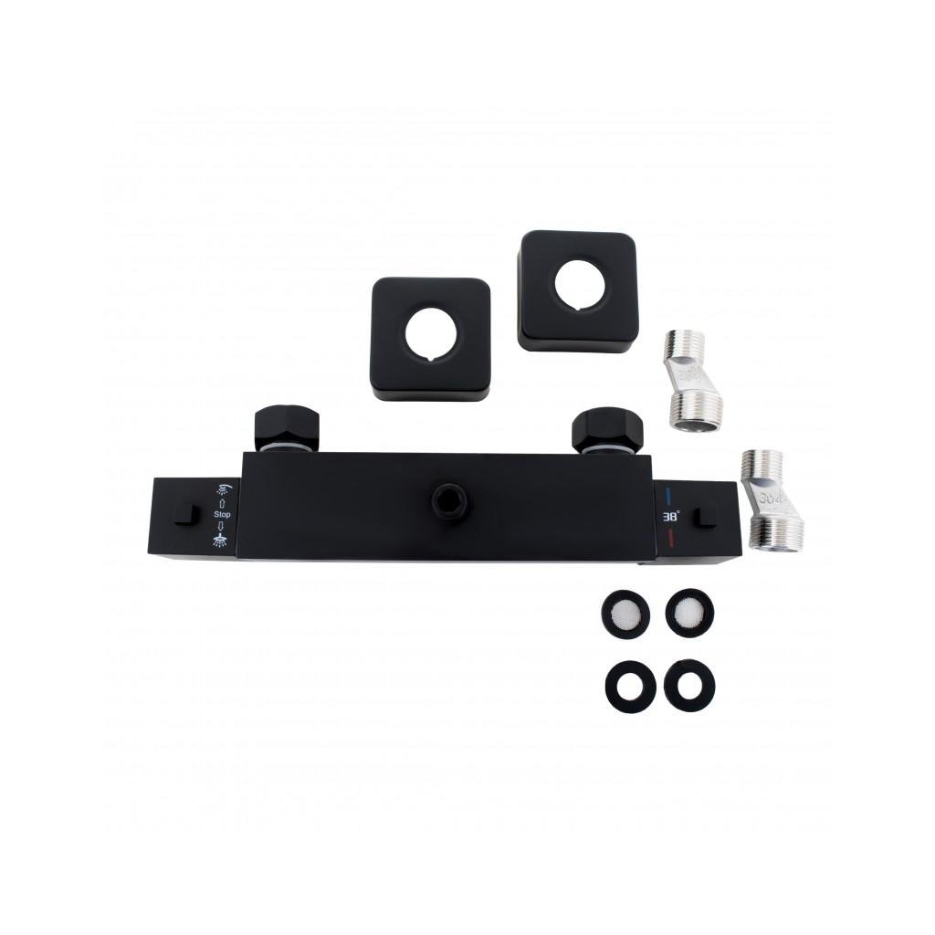 Erga Therm, baterie de duș termostatică de perete 150 mm, negru mat, ERG-YKA-BW.GB-THERM-BLK