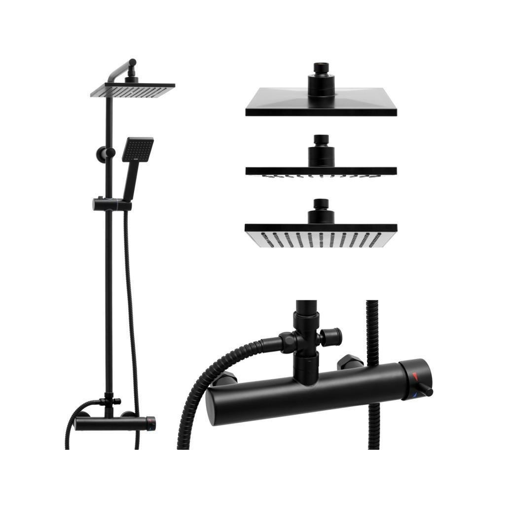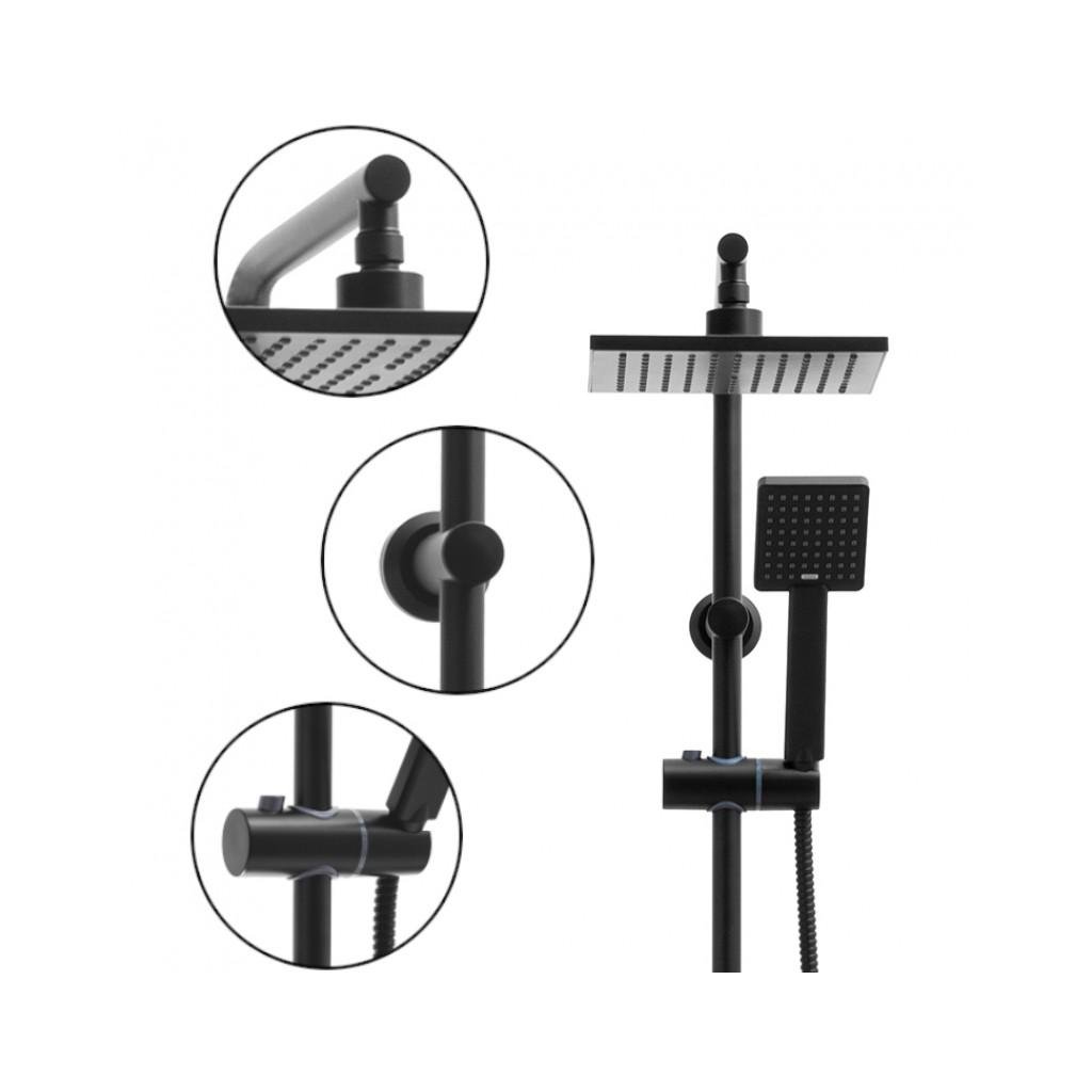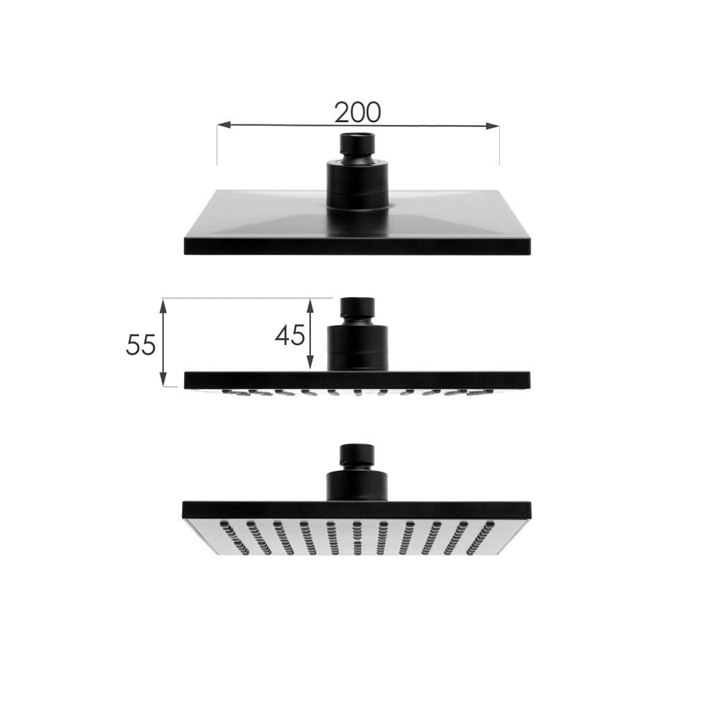 Erga Tiki, set de dus cu robinet cu maneta si cap de ploaie 20x20 cm, negru mat, ERG-YKA-BP.TIKI-BLK
