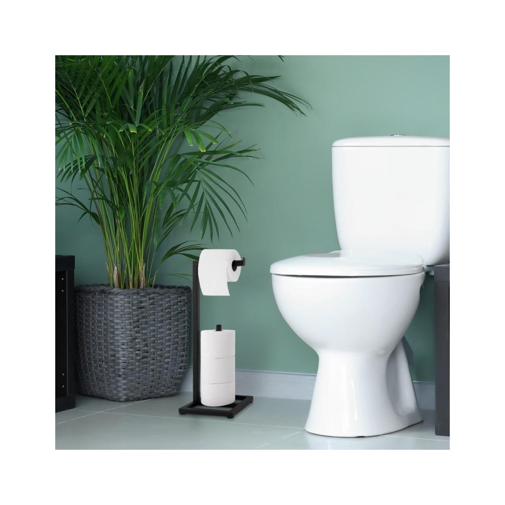 Suport elegant pentru hârtie igienică de rezervă cu un suport suplimentar pentru role. Suportul este realizat din oțel vopsit de înaltă calitate. Baza largă și plăcuțele din plastic asigură o stabilitate excelentă.