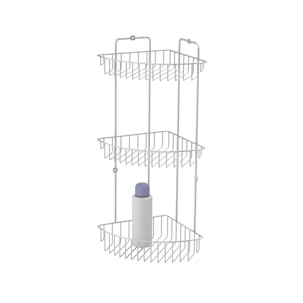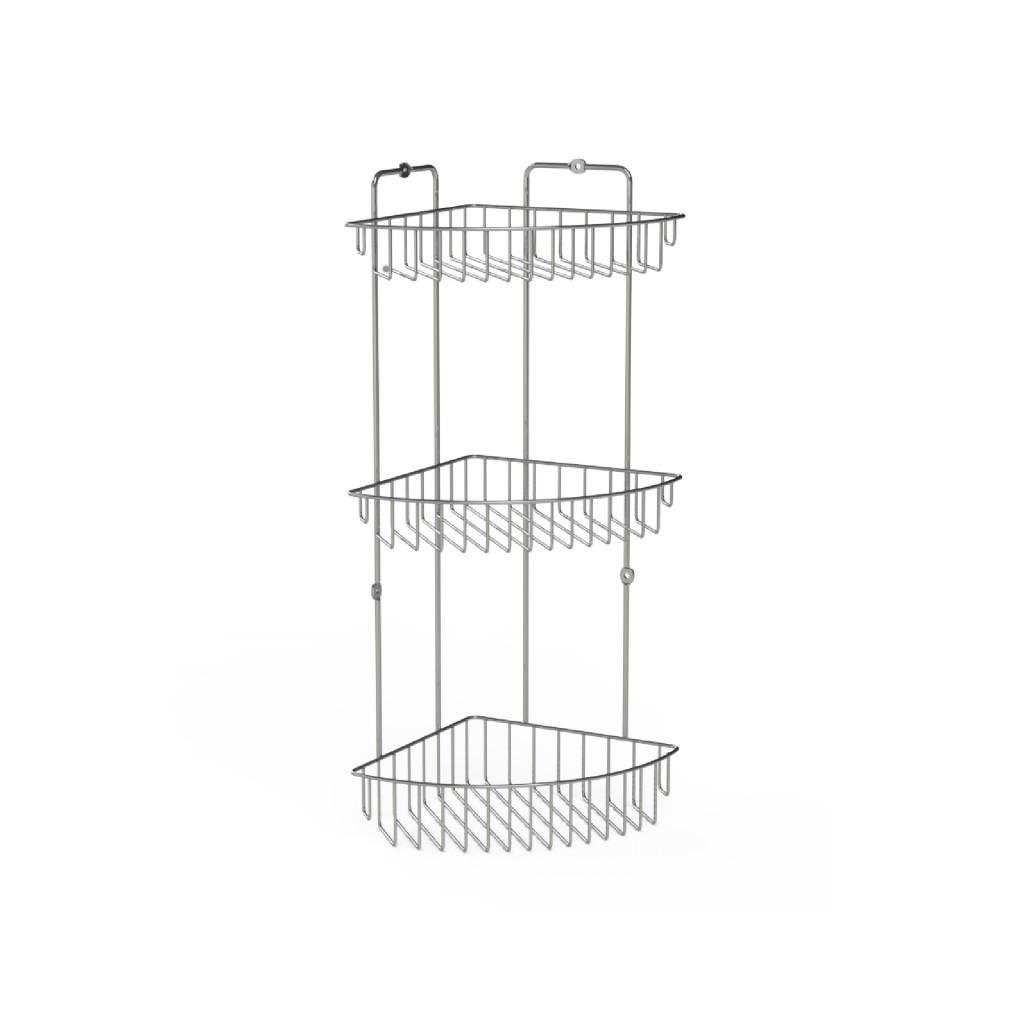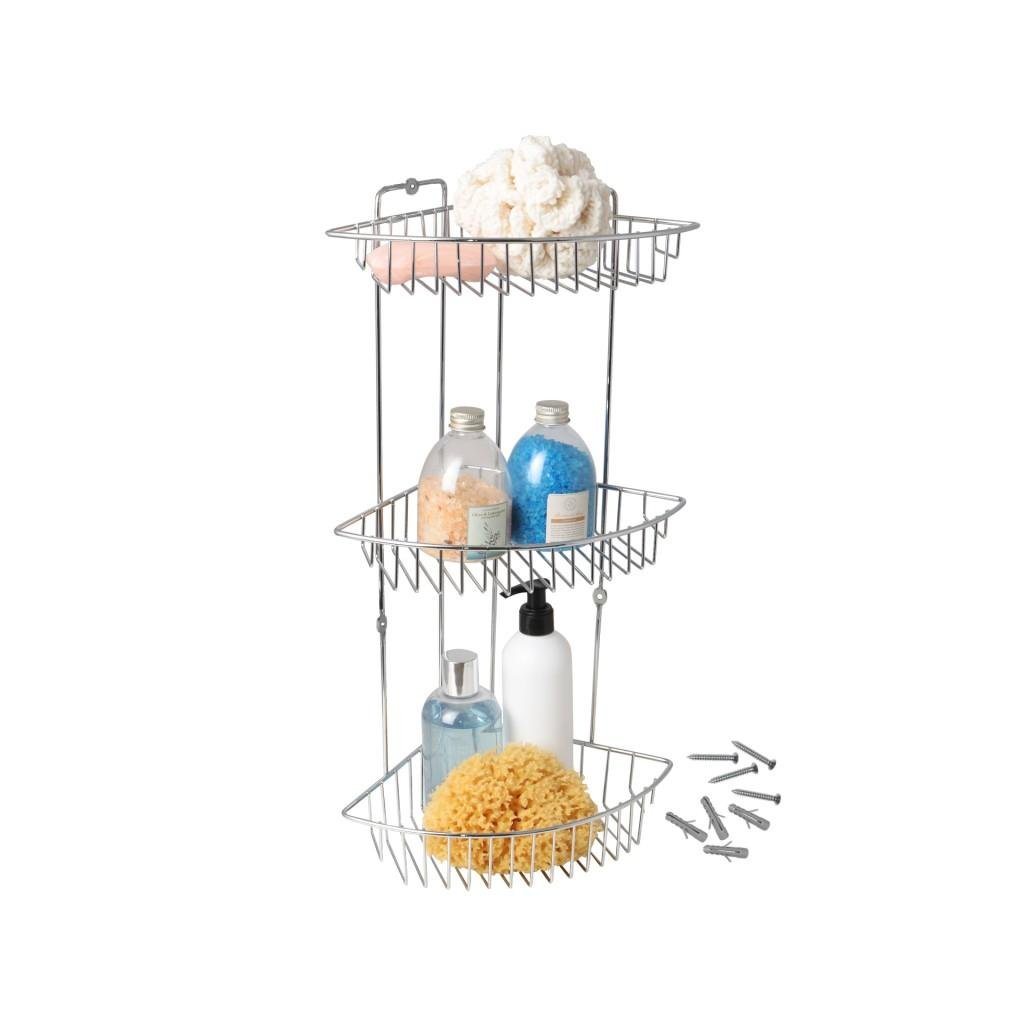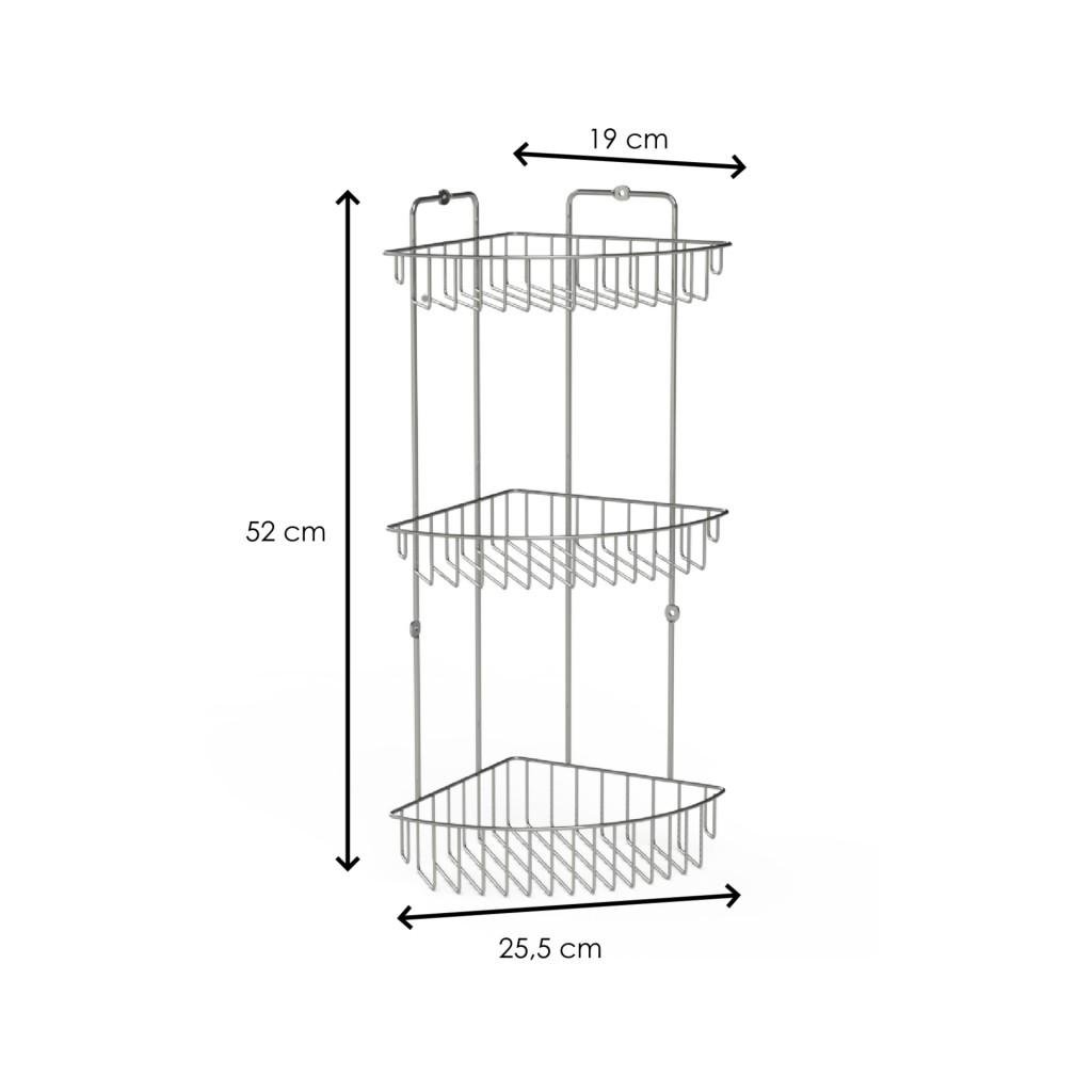 Raft de coltar cu trei straturi pentru accesorii de baie. Fabricat din fir cromat. Raftul se înșurubează pe perete folosind dibluri de perete (care sunt incluse în pachet).
