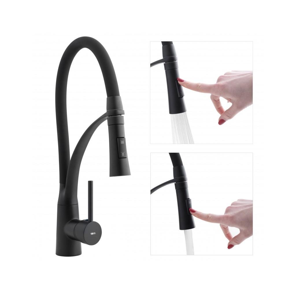 Erga Zefir, baterie chiuveta inalta cu brat elastic h-430, negru mat, ERG-YKA-BZ.ZEFIR-BLK