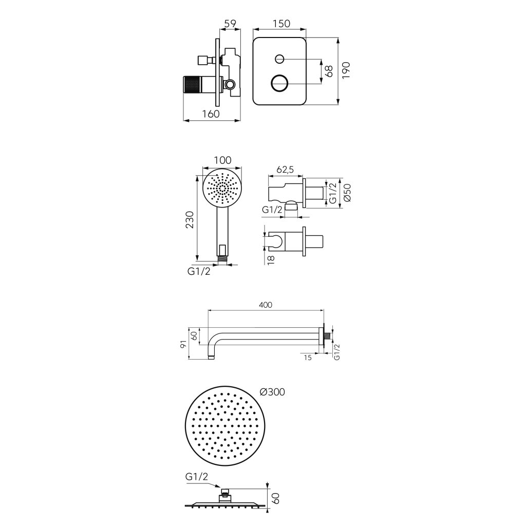 - Scop: corp cu 2 funcții pentru controlul dușului manual și al dușului de ploaie