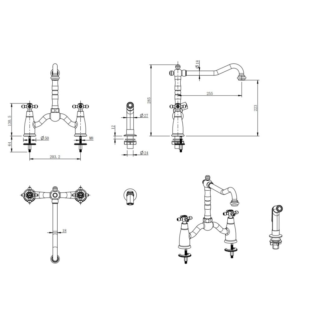 F-Design Lacrima, robinet pentru chiuvetă cu 3 găuri cu gura de scurgere separată, retro bronz, FD1-LRA-8-66