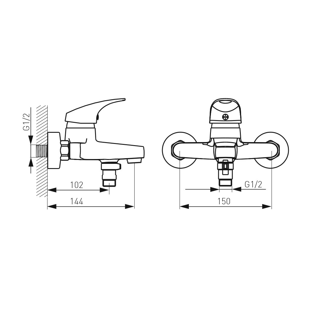 Ferro One, Baterie pentru cada montată pe perete fără accesorii One cromat, BFO1