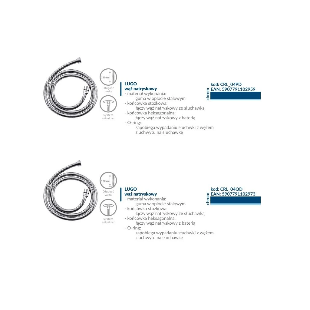Furtun de duș Kuchinox Lugo 1500 mm, cromat, LAV-CRL_04PD