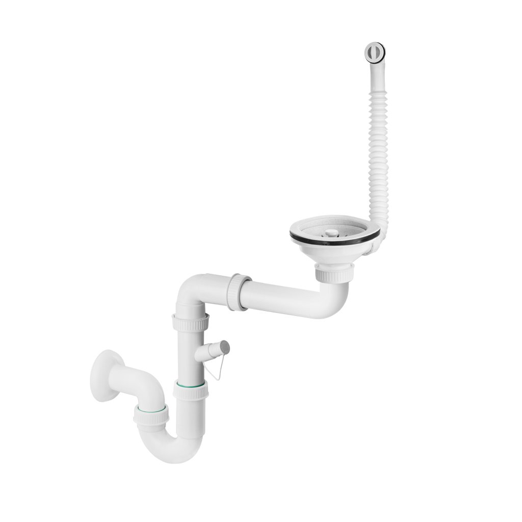 Gamma, sifon manual cu 1 camera pentru chiuvete din granit si otel inoxidabil, alb, GMA-1M11WH-PP
