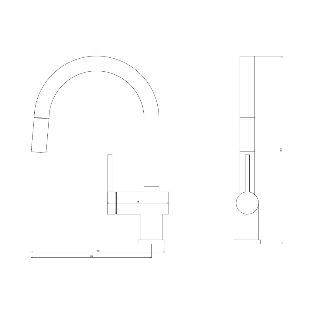 Bateria este echipată cu un gura de scurgere extractibilă , care facilitează clătirea vaselor, curățarea chiuvetei și umplerea recipientelor mai mari. Capul de duș cu funcție dublă permite comutarea ușoară între jetul clasic și modul duș, ceea ce crește confortul în timpul lucrului și contribuie la economisirea apei.