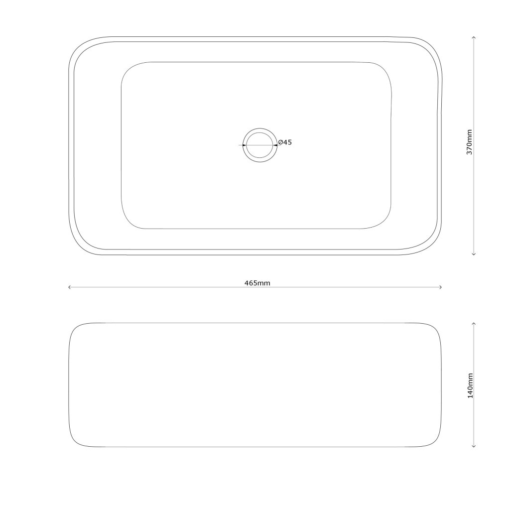Gamma Cava, lavoar blat 480x370x140 mm, alb cu margine neagra, GMA-UC-CAVA