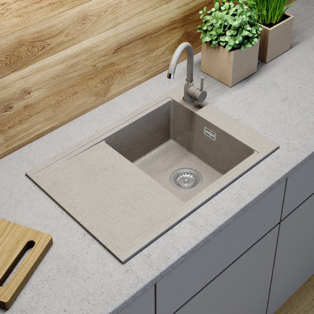 Gamma Design 7050, chiuvetă granit cu 1 compartiment 700x480x205 mm, bej, GMA-ZLE000126
